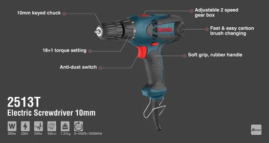 Experience the precision and power of the Ronix 10mm Variable Speed Electric Screwdriver Drill. Designed for professionals, this compact tool offers a robust 280W motor, perfect for both delicate projects and heavy-duty tasks. Its variable speed control ensures you have the perfect pace for every application, enhancing efficiency and performance.