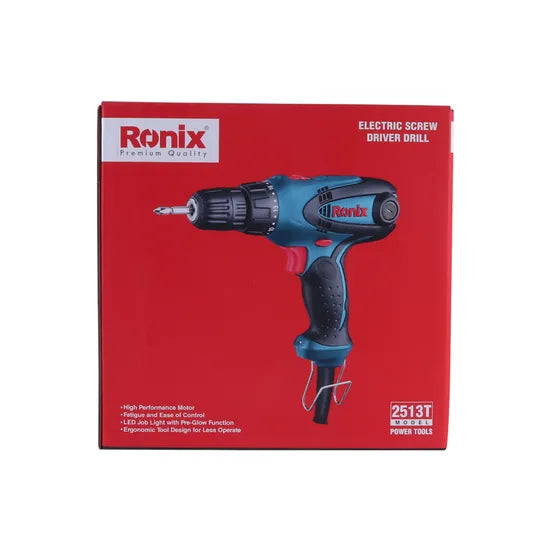 The Ronix 2513T is a versatile and powerful electric screwdriver, designed to meet the demanding needs of professional contractors and DIY enthusiasts alike. Featuring a robust 280W motor and variable speed control, this compact tool ensures precision and efficiency in every task. Ideal for drilling and driving screws, it delivers exceptional performance in a lightweight design, perfect for extended use.