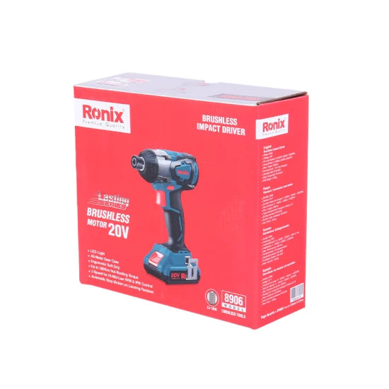The Ronix 8906 Cordless Impact Driver combines compact design with robust power, featuring a brushless motor to ensure high-efficiency and extended durability. With variable speeds and a 280Nm torque capability, this tool adapts seamlessly to a range of fastening and drilling tasks, whether you're at home or on a professional job site.