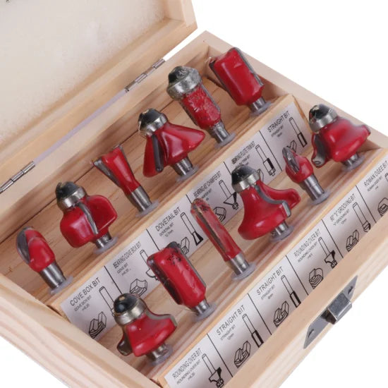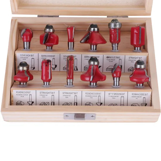 12-Piece 6mm Tungsten Carbide Wood Router Bit Set