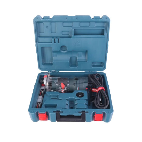 The Ronix 7106 Palm Router Electric Hand Trimmer is a robust woodworking tool designed for precision and versatility. With its high-speed motor running at 30000 RPM and a 6mm collet system, it’s perfect for professional contractors and woodworking enthusiasts alike. The ergonomic design ensures comfort during prolonged use, while its compact size makes it convenient for detailed work in tight spaces.