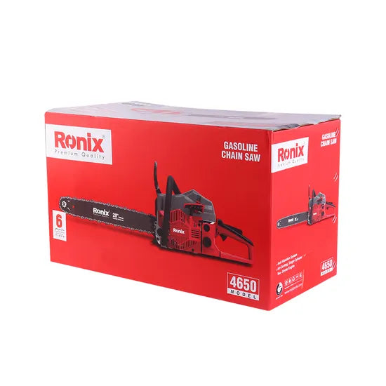 Experience the power and precision of the Ronix Model 4650 Gasoline Chainsaw, equipped with a 2300W engine and a 58cc displacement, perfect for demanding wood cutting tasks. Its ergonomic handle enhances comfort during prolonged use, while the robust 50cm blade ensures efficient cutting power. Ideal for both professional and DIY users, this chainsaw combines reliability with ease of operation.