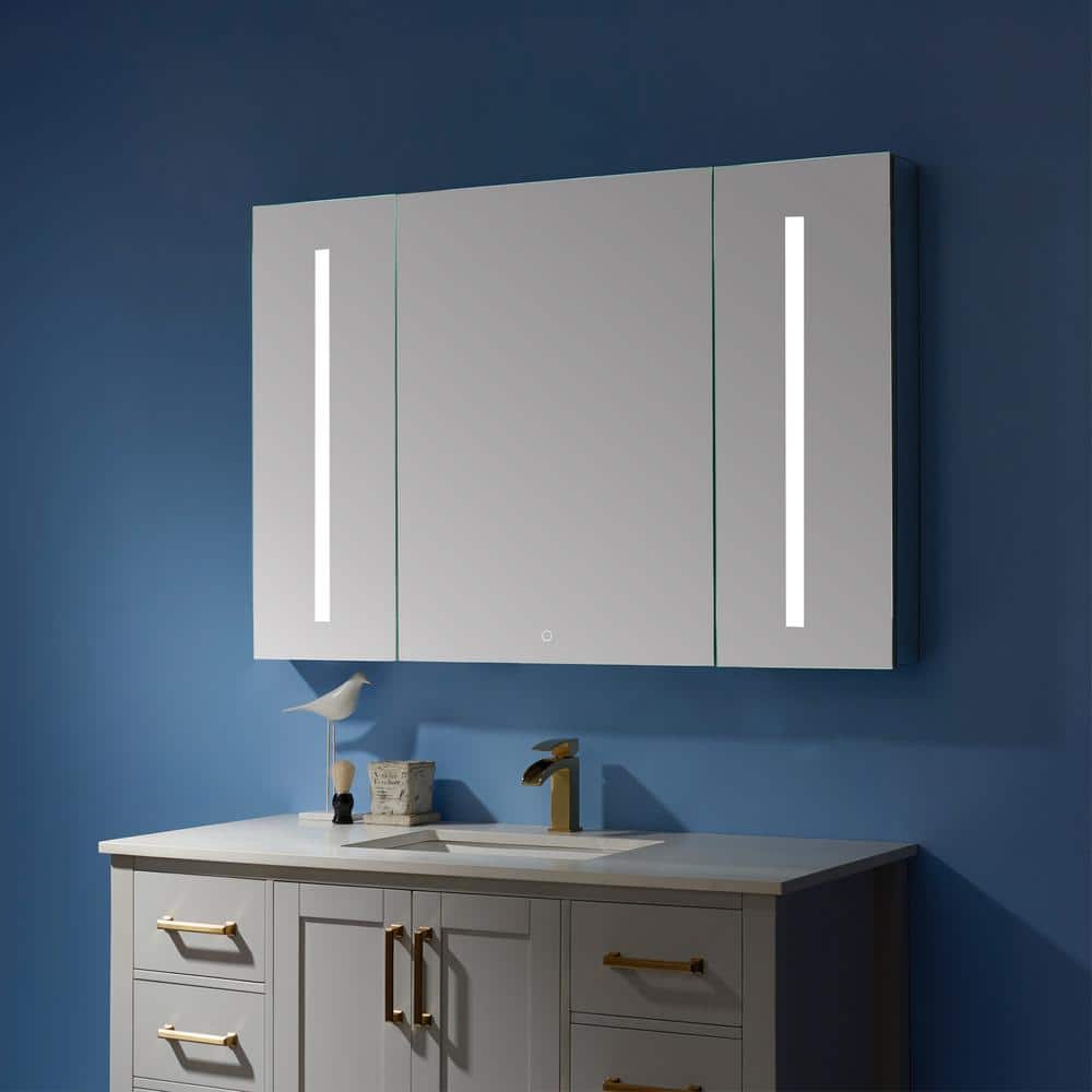 ROSWELL Rieti 48 in. W x 32 in. L Rectangular Surface-Mount LED Glass Surface Mount Medicine Cabinet with Mirror in Silver