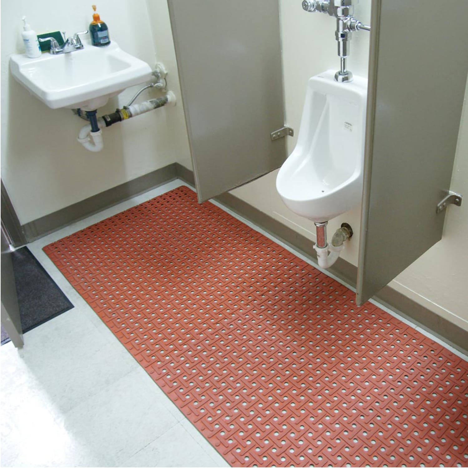 A: Installation is straightforward—just lay the mat on the floor where extra traction and drainage are needed. It does not require adhesives.