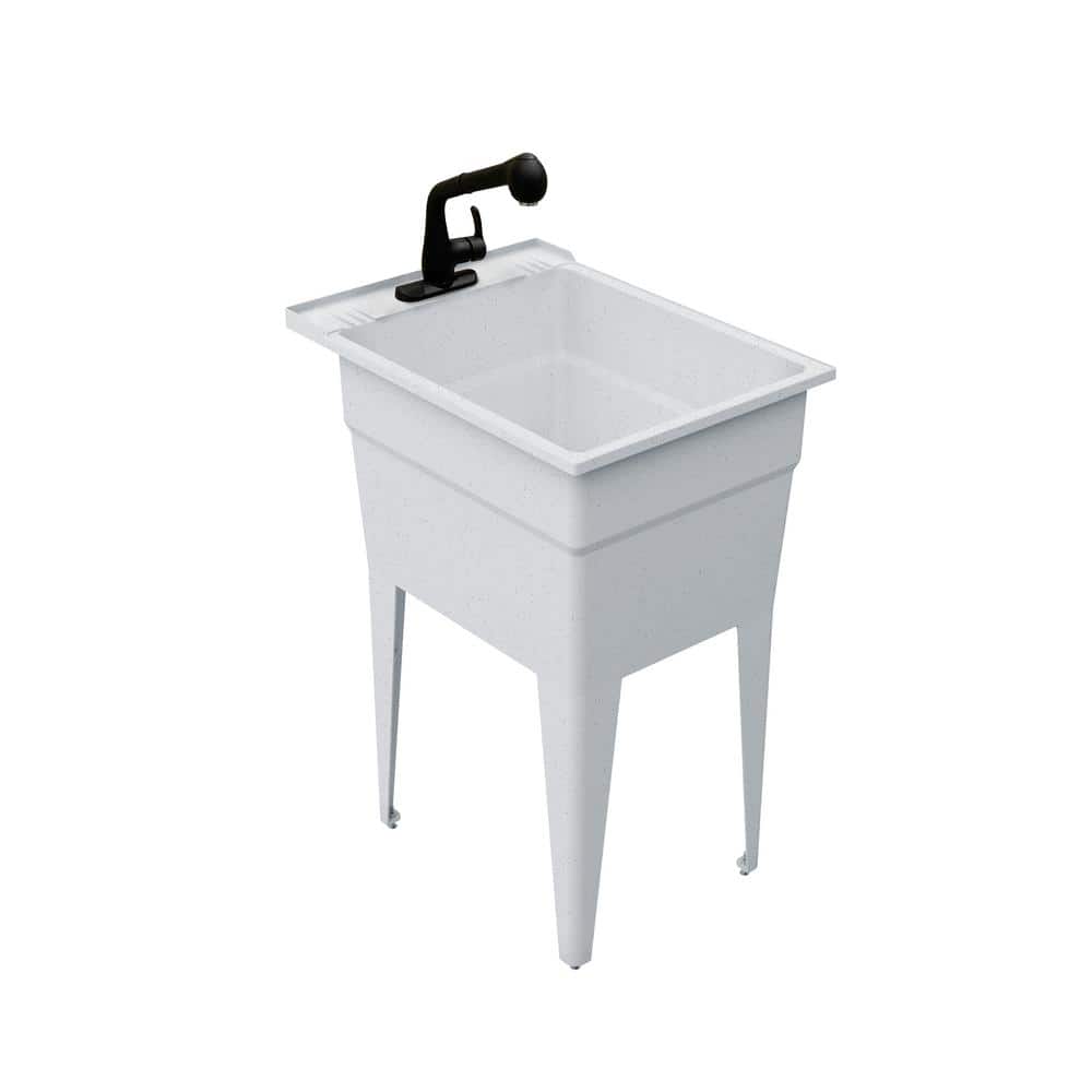 Granite Freestanding Laundry/Utility Sink with Black Faucet