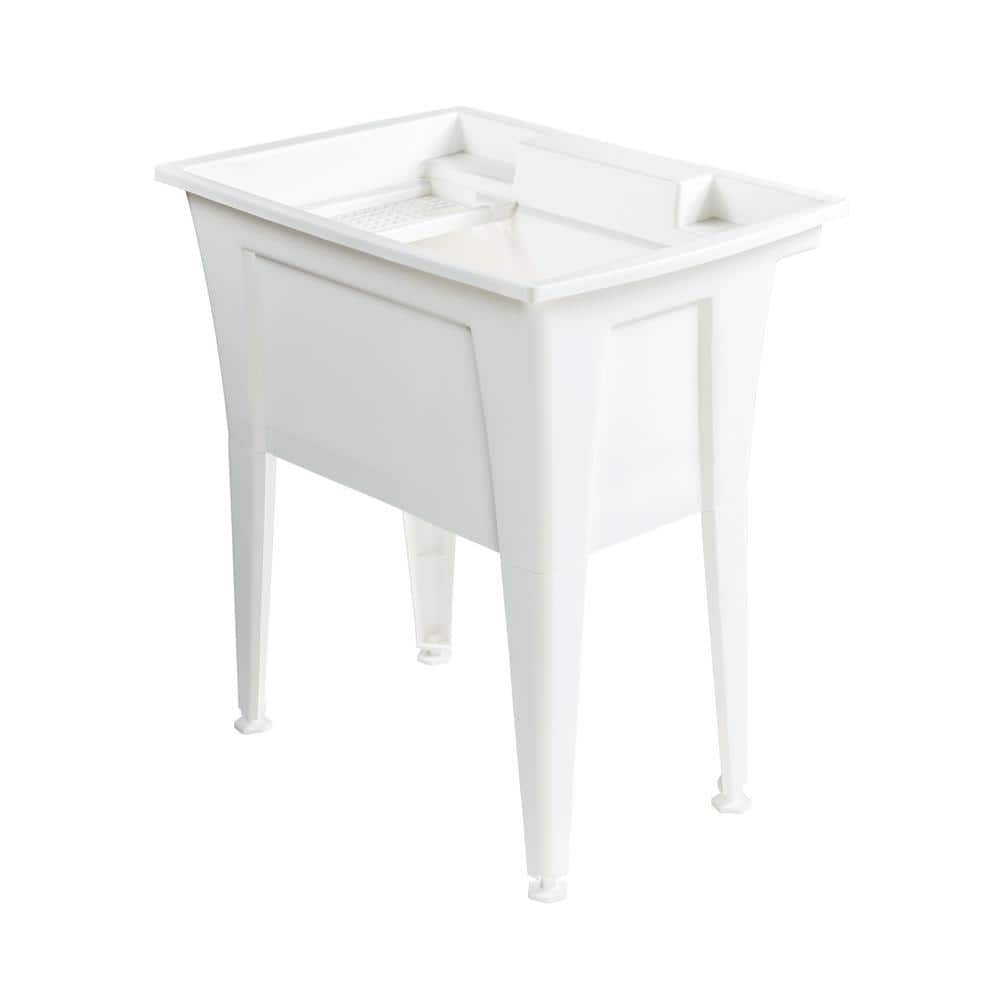 A: Yes, the sink is made from durable virgin polypropylene, capable of handling tough laundry or utility tasks.