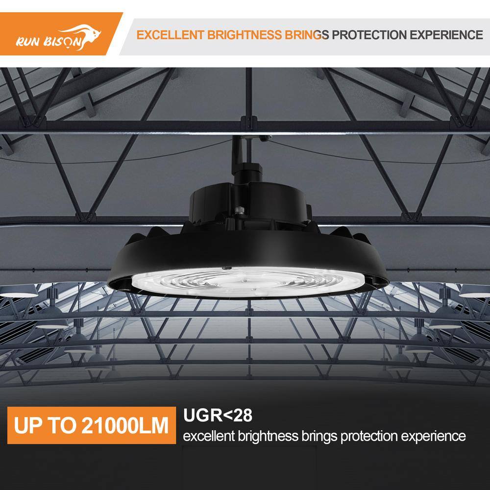 Illuminate large spaces with the RUN BISON UFO LED High Bay Light, offering powerful brightness with up to 21,000 lumens. Ideal for commercial environments, this lighting system is energy-efficient and features versatile dimming capabilities, making it perfect for warehouses, gyms, and garages.