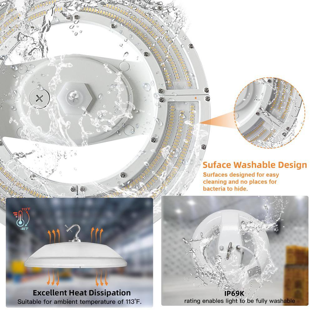RUN BISON 15 in. White 30000 Lumens Integrated LED Dimmable UFO High Bay Light Fixture NSF Certified 50000K Daylight