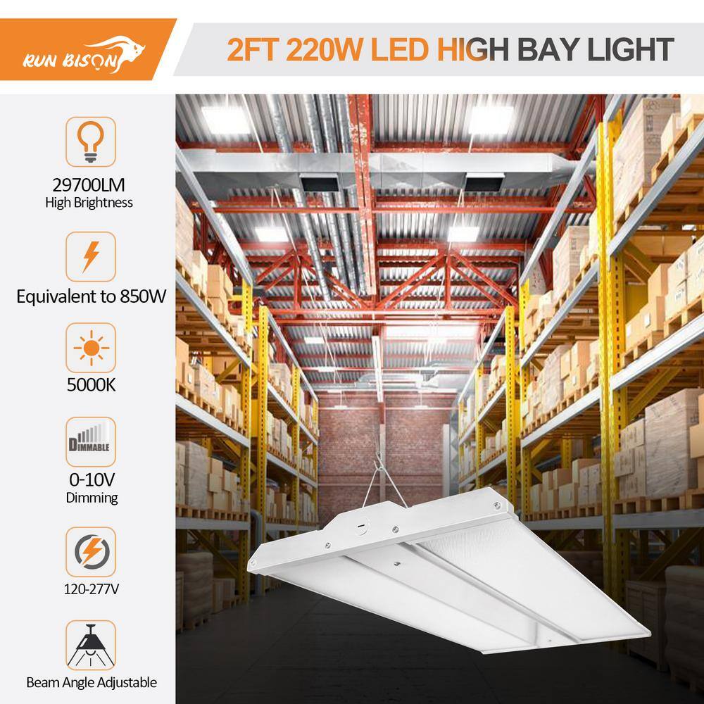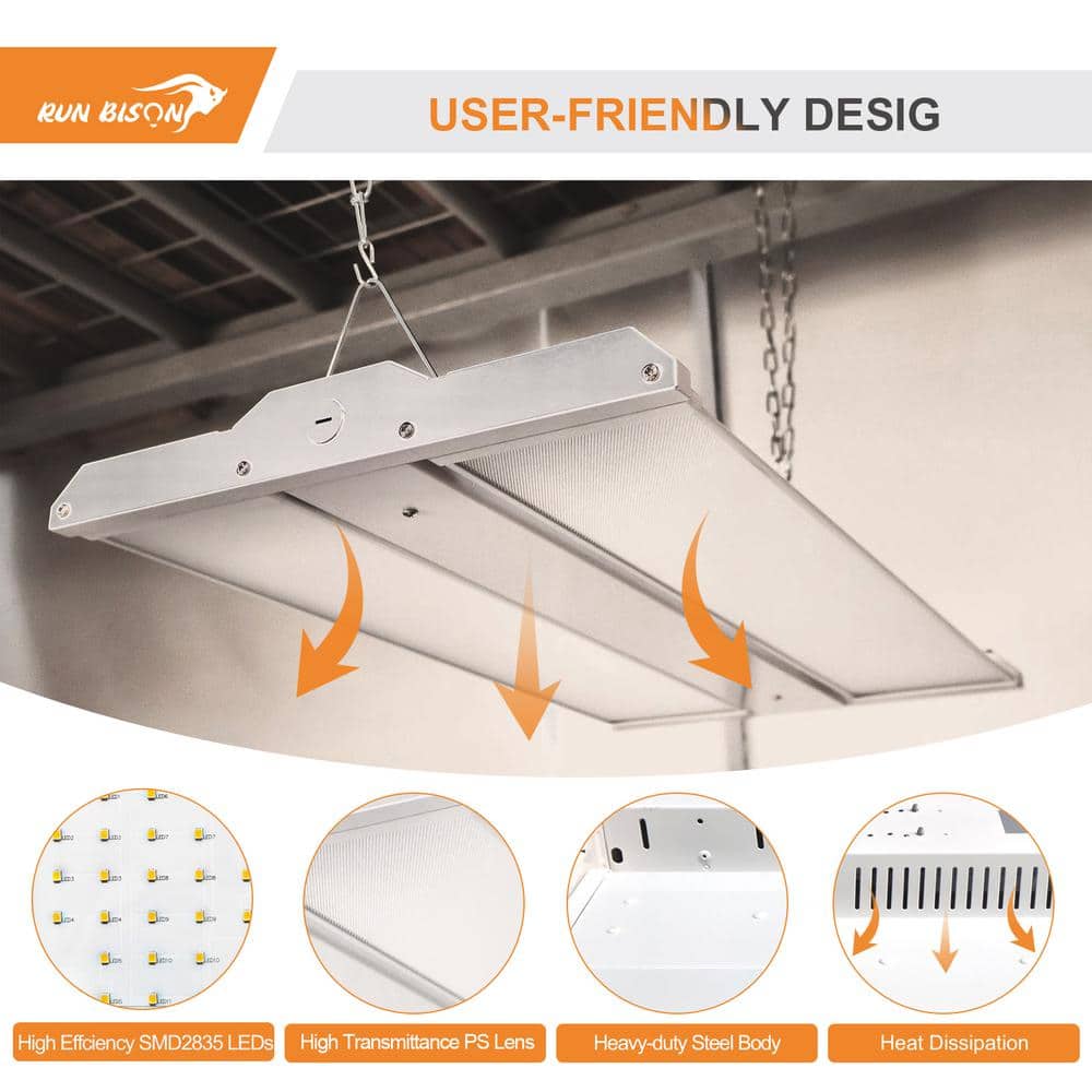 RUN BISON 2 ft. 850-Watt Equivalent 29700 Lumens Integrated LED Dimmable White Linear High Bay Light with Adjustable Panel, 5000K