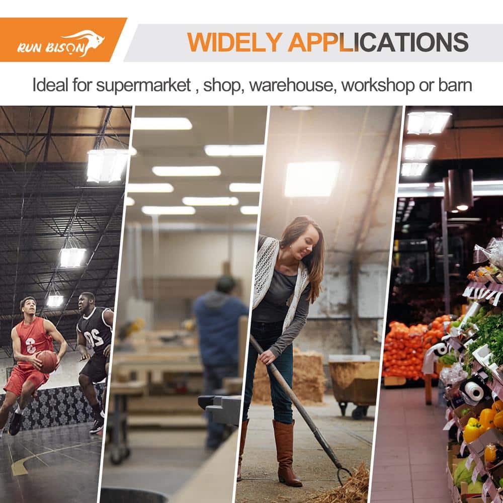 Elevate your commercial lighting with RUN BISON's 2 ft. LED High Bay Light. Delivering 29,700 lumens with a daylight tone at 5000K, this fixture is perfect for workshops, retail spaces, and more. Its adjustable beam angles and robust construction ensure superior energy efficiency and adaptability to various environments.