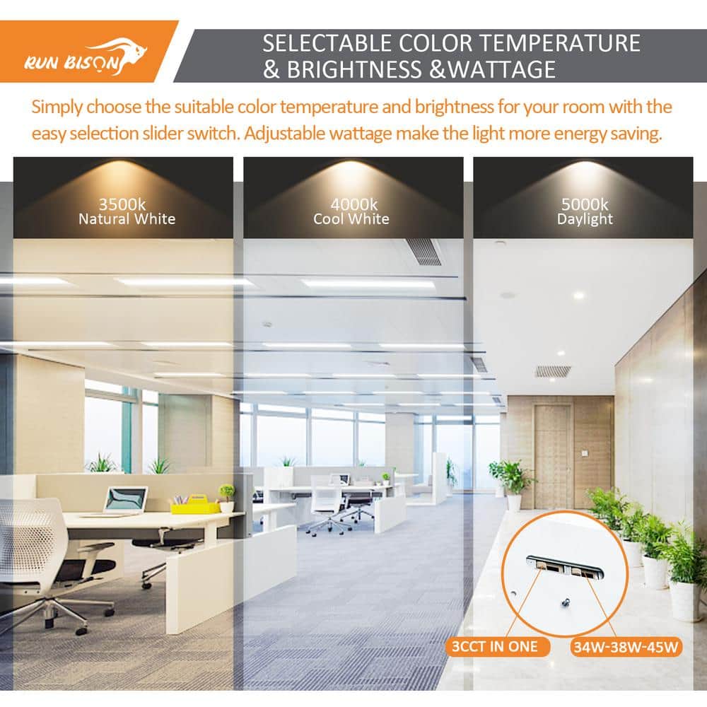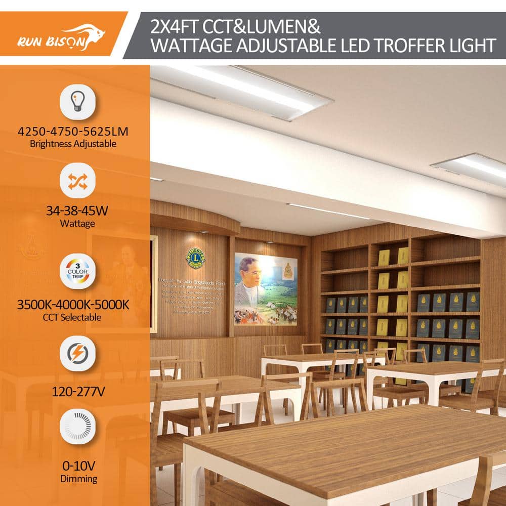 RUN BISON 2 ft. x 4 ft. 120W Equivalent White Dimmable 3500K-4000K-5000K Integrated LED Troffer Light, up to 5625-Lumens, UL
