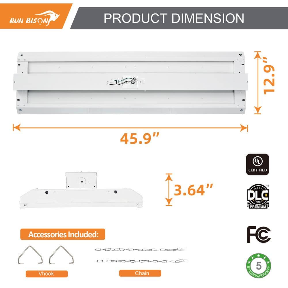 RUN BISON 4 ft. White 1000-Watt Equivalent Integrated LED Dimmable Linear High Bay Light, 40500 Lumens 5000K Dayllight