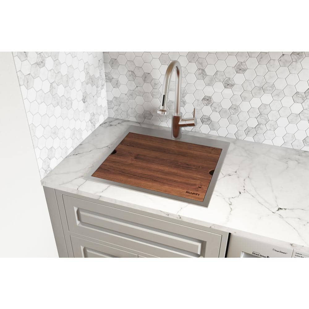 Transform your utility space with the Ruvati Alto Workstation Sink, offering deep capacity and exceptional durability. Crafted from premium 16-gauge stainless steel, it resists rust and scratches while its soundproof design minimizes noise. The included hardwood washboard and rinse grid elevate your laundry and utility tasks to a professional level.