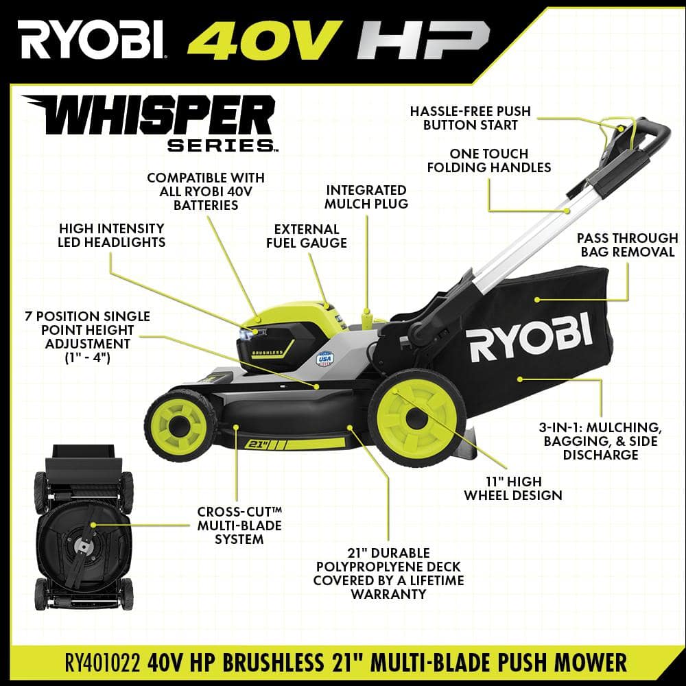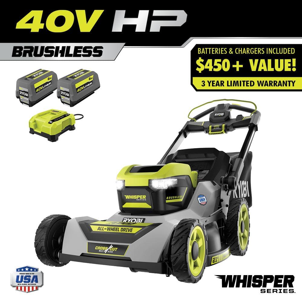 RYOBI 40V HP Brushless 21" Whisper Series Push Mower
