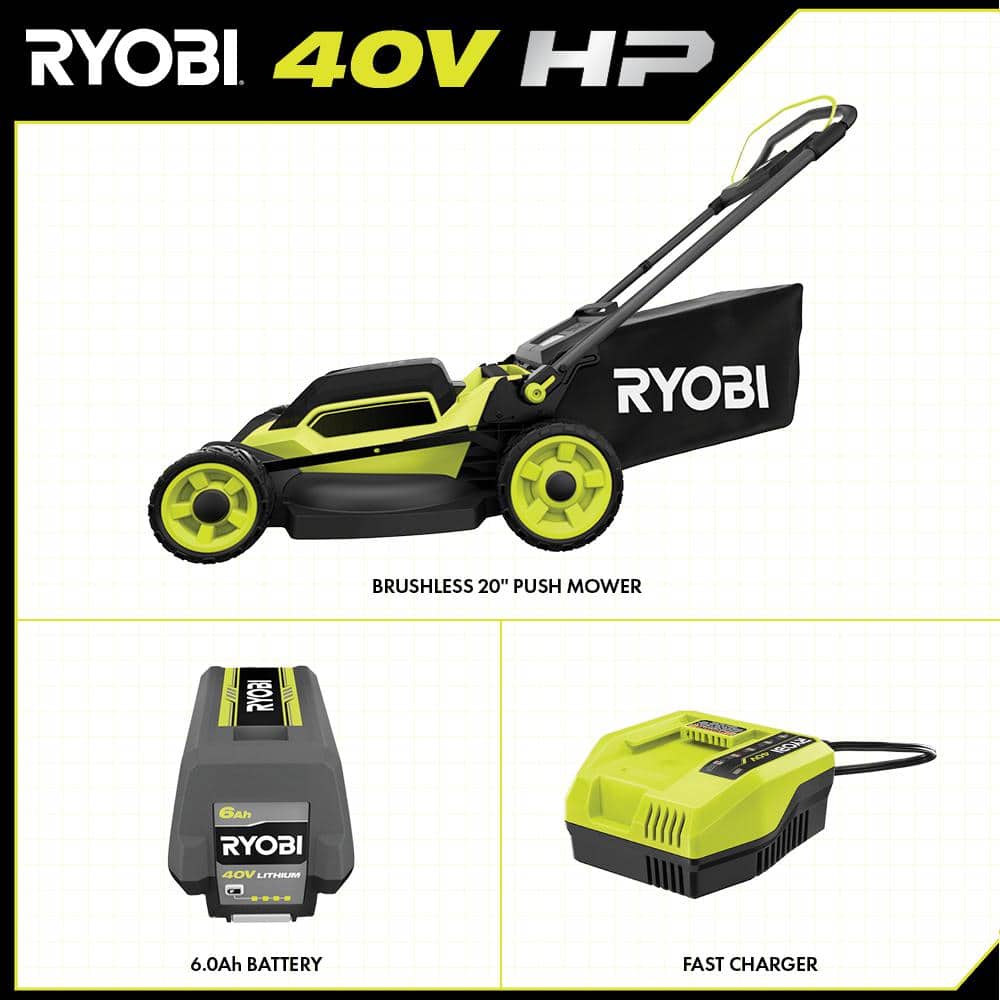 RYOBI 40V HP Brushless 20 in. Cordless Battery Walk Behind Push Mower with 6.0 Ah Battery and Charger