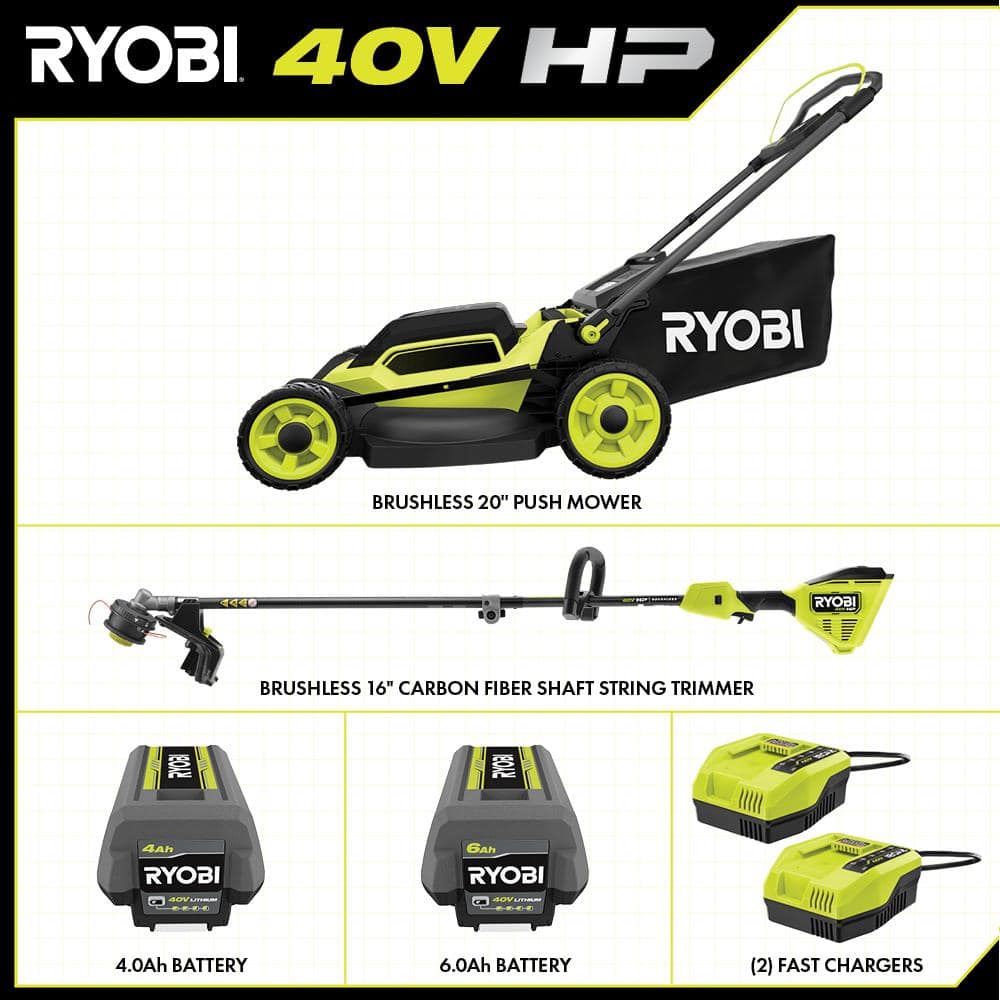 Tackle your lawn with the RYOBI 40V HP Brushless 20" Whisper Series Cordless Push Mower. This eco-friendly mower replaces traditional gas models, offering up to 45 minutes of runtime per charge with its powerful lithium battery. Featuring a responsive brushless motor and whisper-quiet operation, it's designed for efficiency and ease.