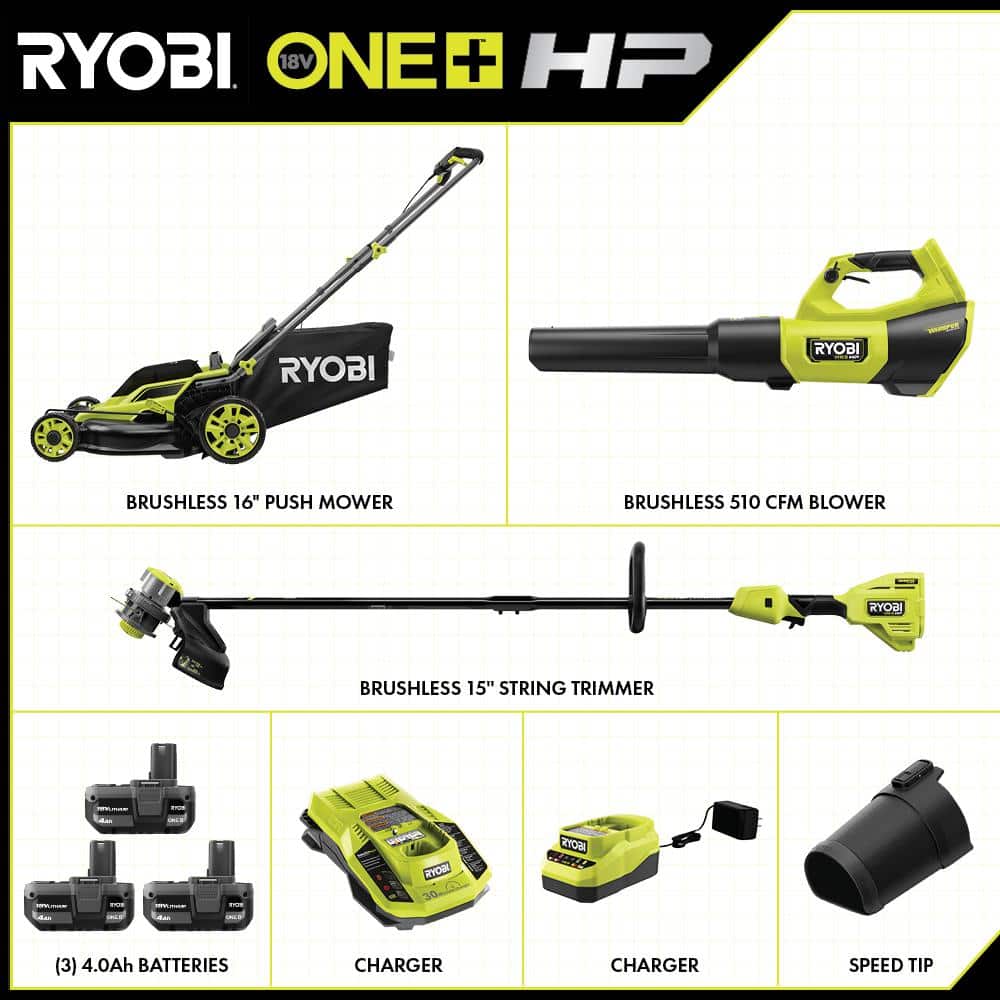 RYOBI ONE+ HP 18V Cordless Lawn Care Kit