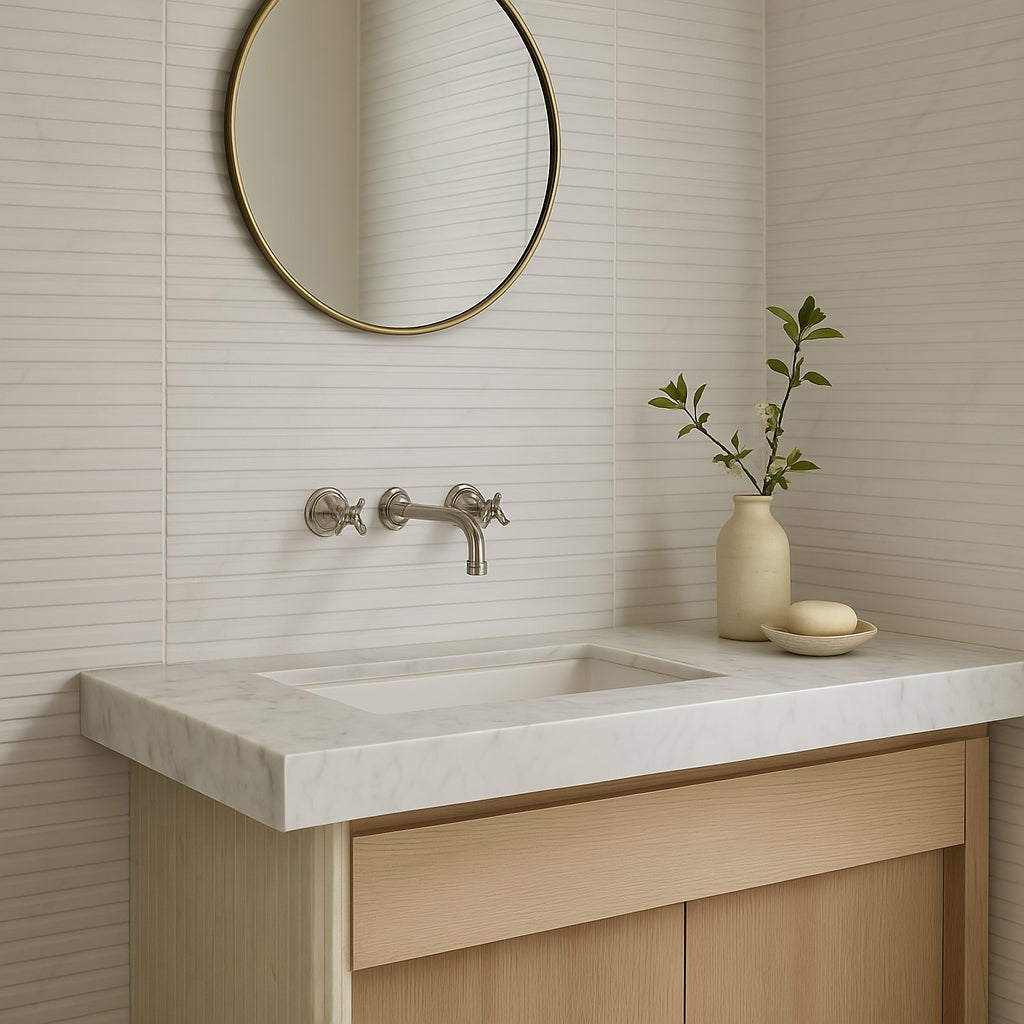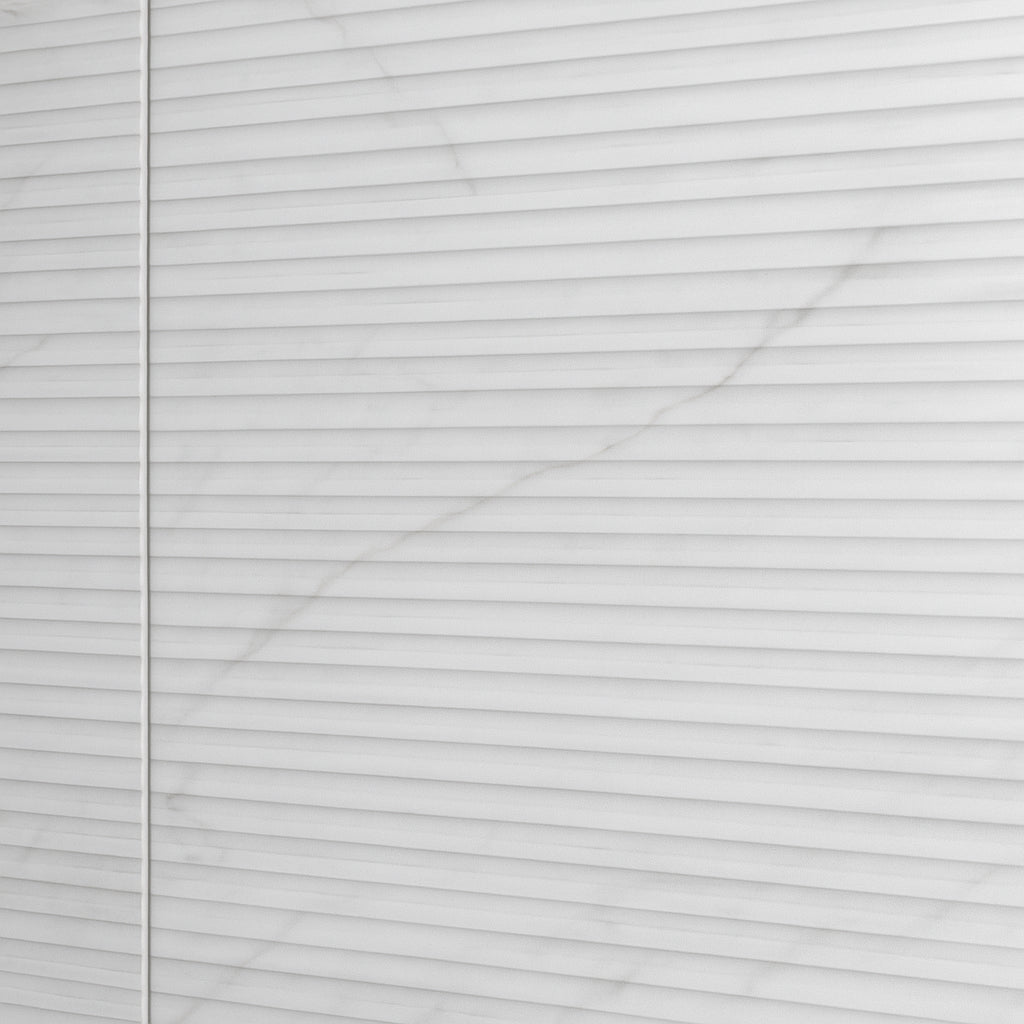 Transform your walls with the elegant Calacatta Blanc Fluted Ceramic Tile today!