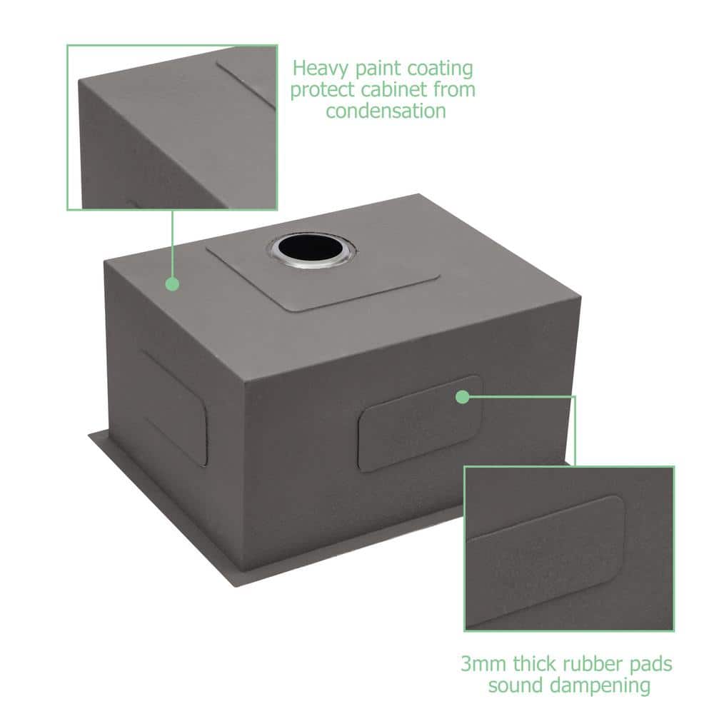 A: The thick rubber padding underneath the sink helps reduce condensation, preventing moisture buildup in your cabinets.