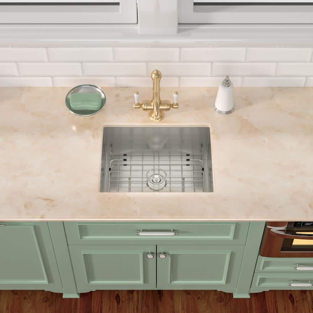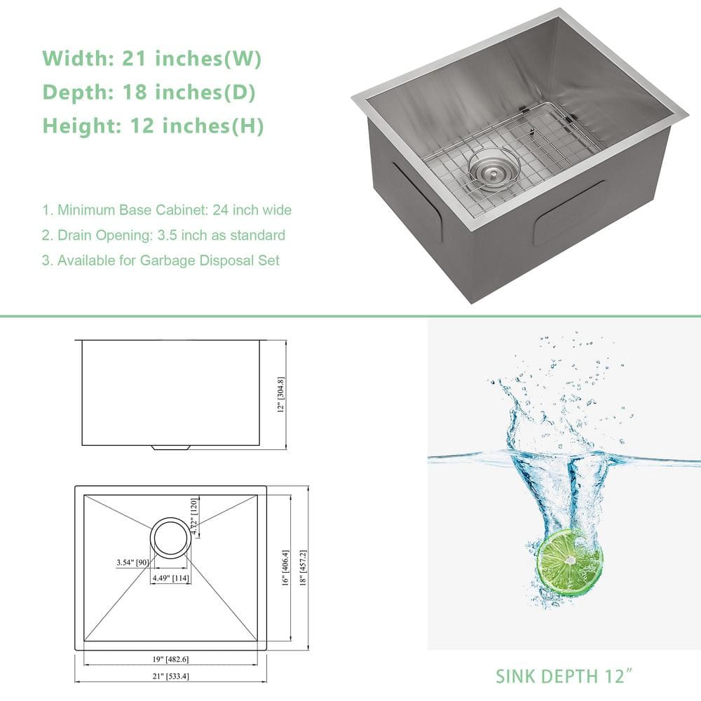 Sarlai 18 in. D x 21 in. W Undermount Laundry/Utility Sink Brushed Nickel Single Bowl Deep 16 Gauge Stainless Steel Bar Sink