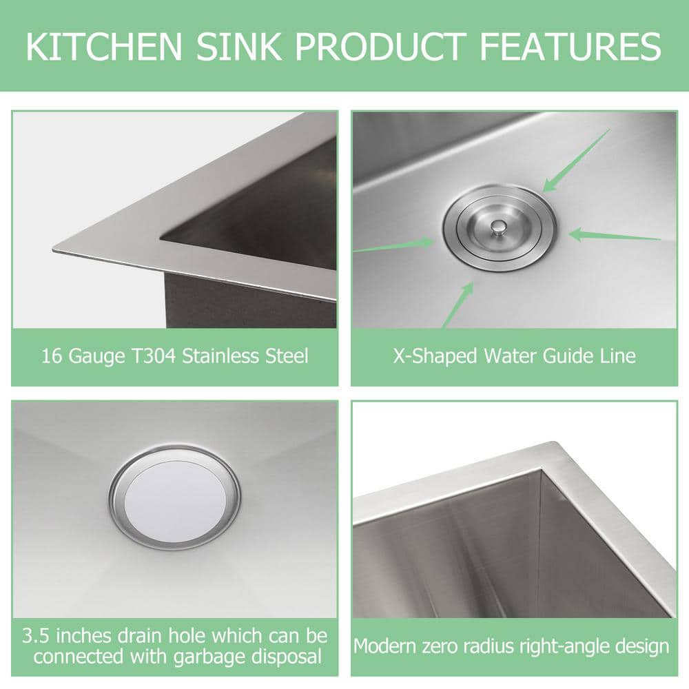 - Complete Kit: Includes sink, bottom grid, drain strainer, drying rack, cutout template, and more.