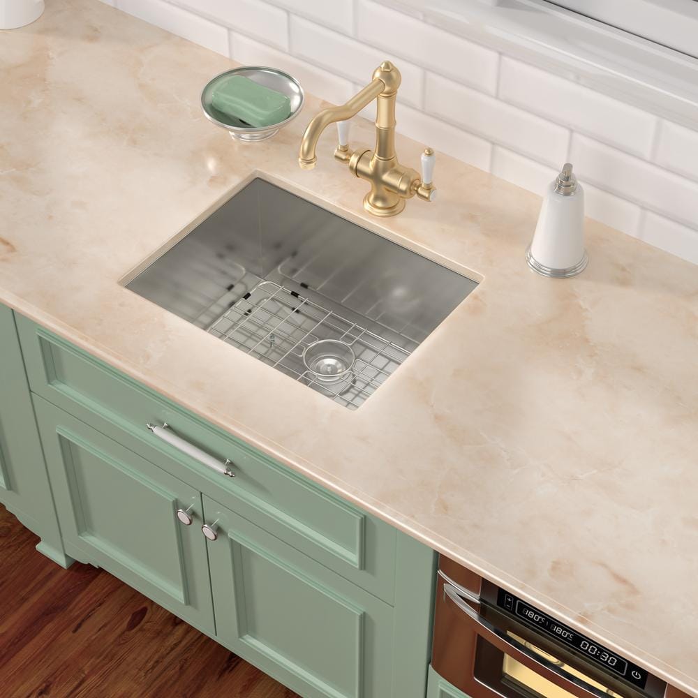 The Sarlai 21-inch Undermount Utility Sink is a robust addition to any laundry room or workshop, with a spacious and enduring 16-gauge stainless steel basin. Its brushed nickel finish and zero-radius corners enhance modern design aesthetics, making it both a practical and stylish choice. This sink is equipped to handle heavy-duty use while reducing noise and condensation with its innovative soundproof coating and padding.