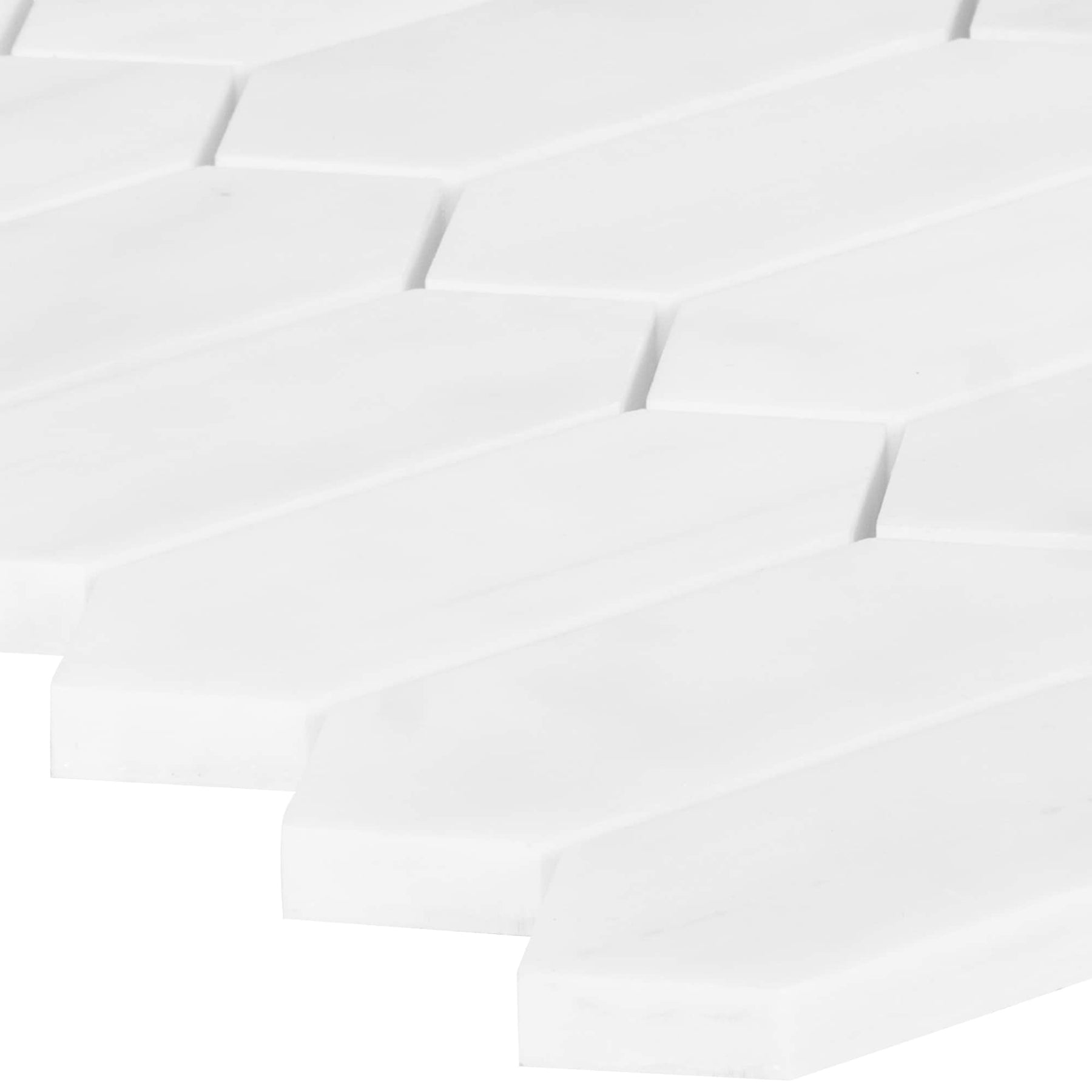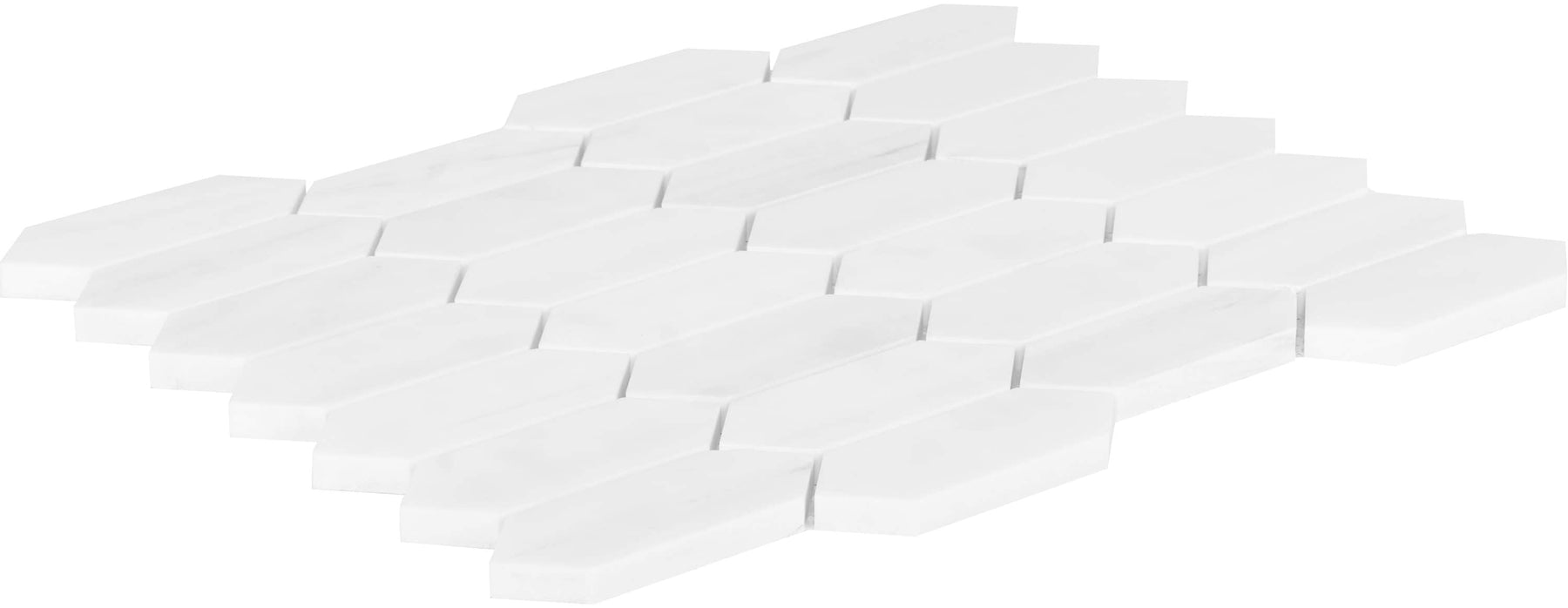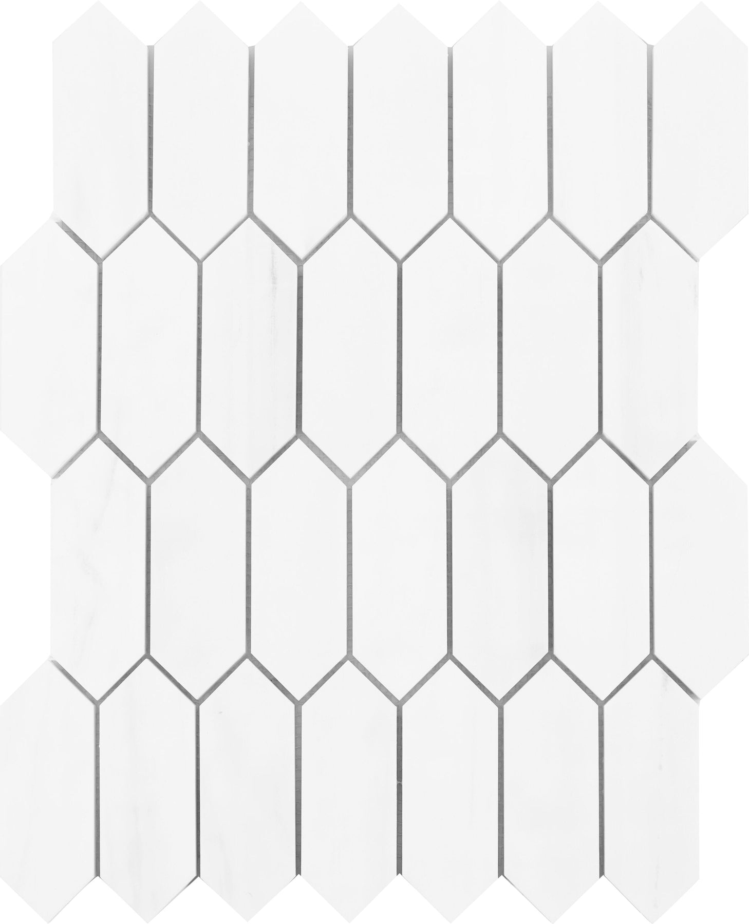 Elevate your interiors to new heights of luxury with the Bianco Dolomite Picket Mosaic Tile—purchase now to transform your space.