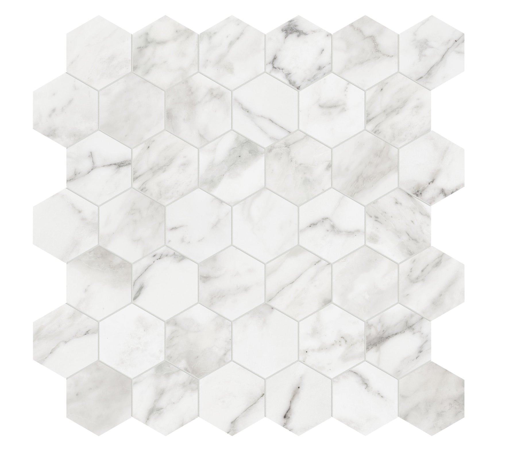 Transform your space with the Satori Bianco Palazzo Polished Porcelain Tile, which combines the classic elegance of marble with the durability of modern porcelain. Featuring a chic hexagon mosaic design, this versatile tile is perfect for both floors and walls, offering a seamless and sophisticated look with its rectified edges.