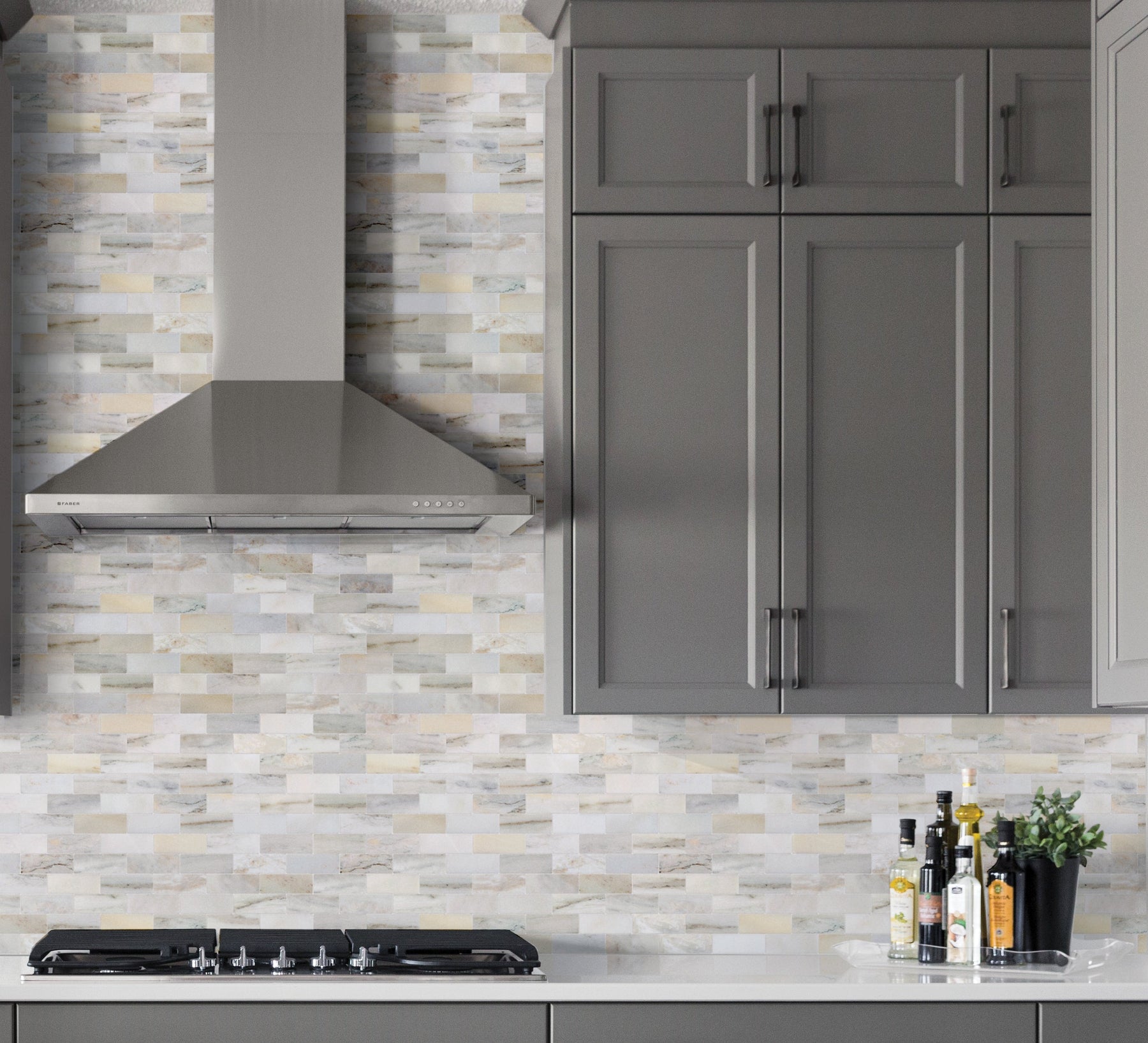 Imagine transforming a room with the luxurious allure of the Satori Bianco Perla Polished Mosaic Tile. This radiant masterpiece is more than just a tile; it is a statement piece—each tile reveals unique veining that tells the story of its crafted perfection. Style it as a stunning bathroom backdrop or a captivating kitchen feature wall, where its polished surface shimmers under soft lighting. Essential in curating a sophisticated ambiance, this tile is your canvas for achieving timeless luxury.