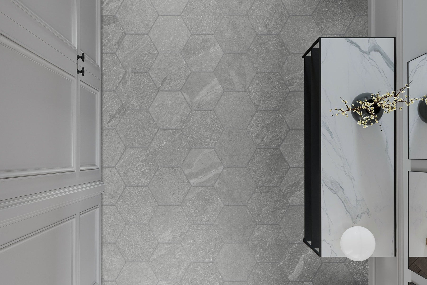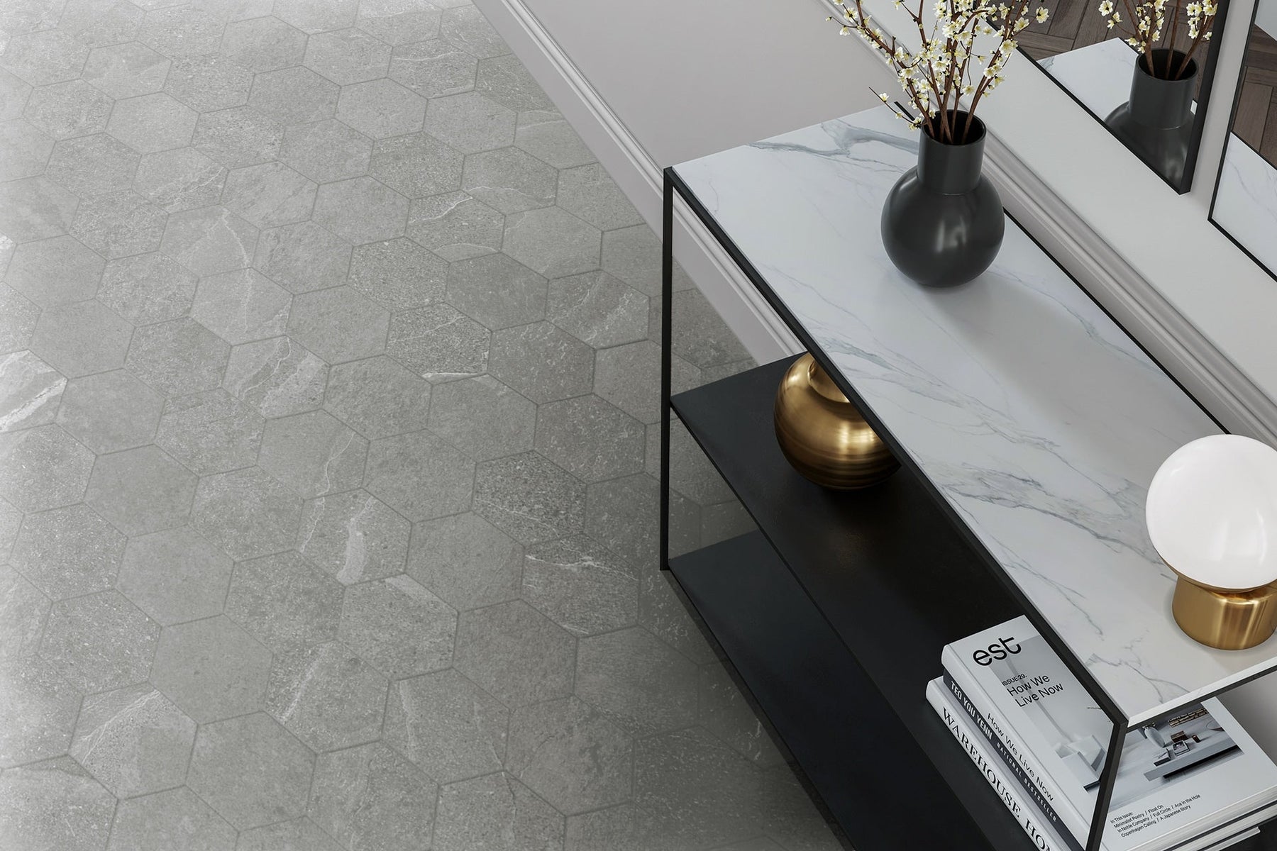 Enhance your living space with the Gios Obsidian Hexagon Tile and discover the perfect balance of style and functionality today!