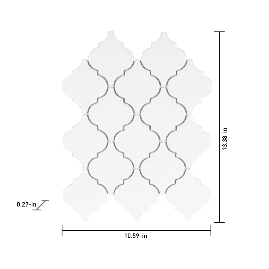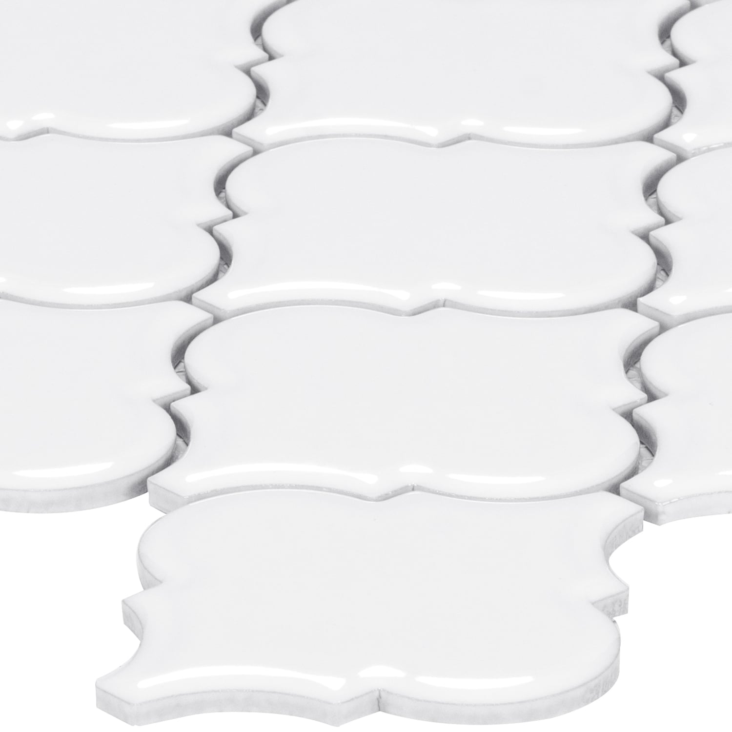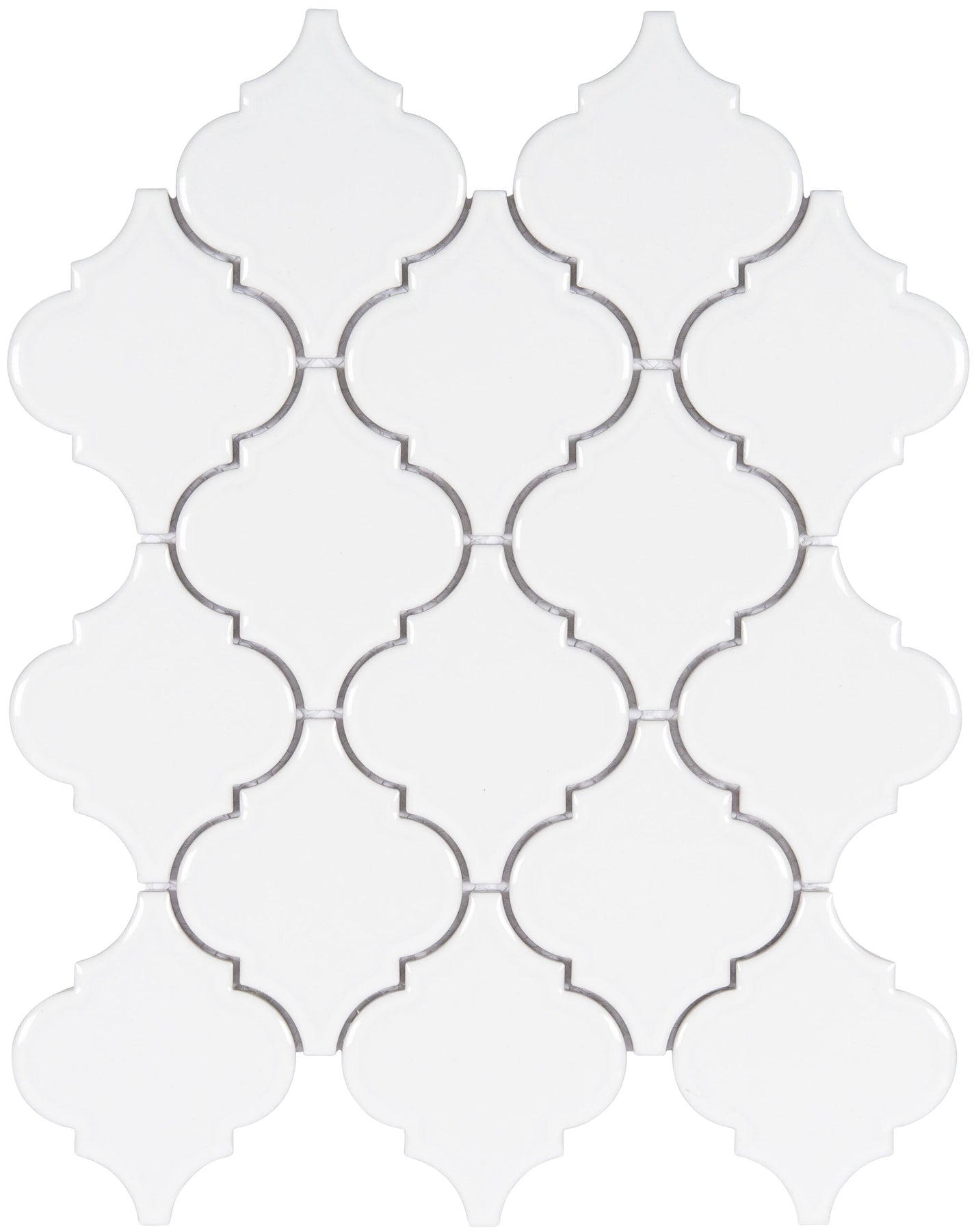 Transform your home with the Satori Hudson Brilliant White Glossy Porcelain Arabesque Mosaic Tile. With its smooth, elegant finish and intricate lantern design, this tile is perfect for modern interiors seeking a touch of classic sophistication. Its durable and waterproof nature makes it suitable for a range of spaces, from kitchen backsplashes to shower walls.