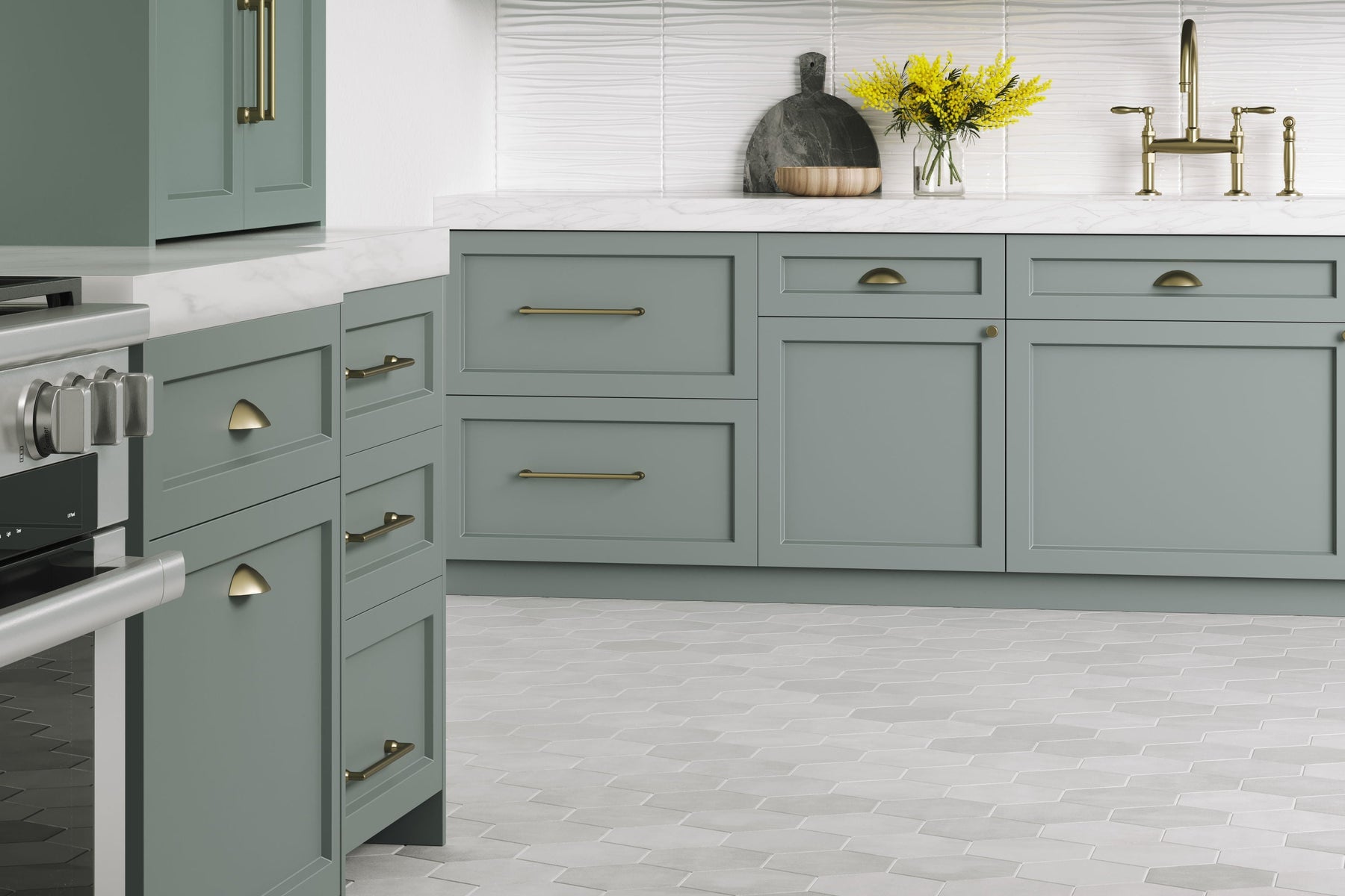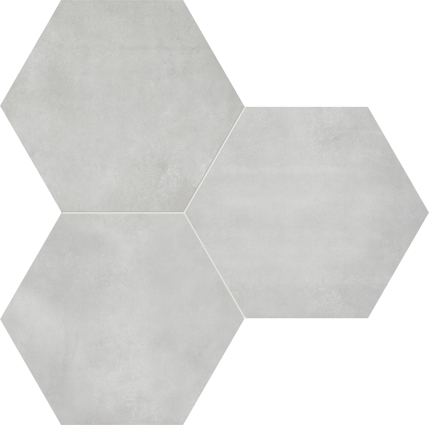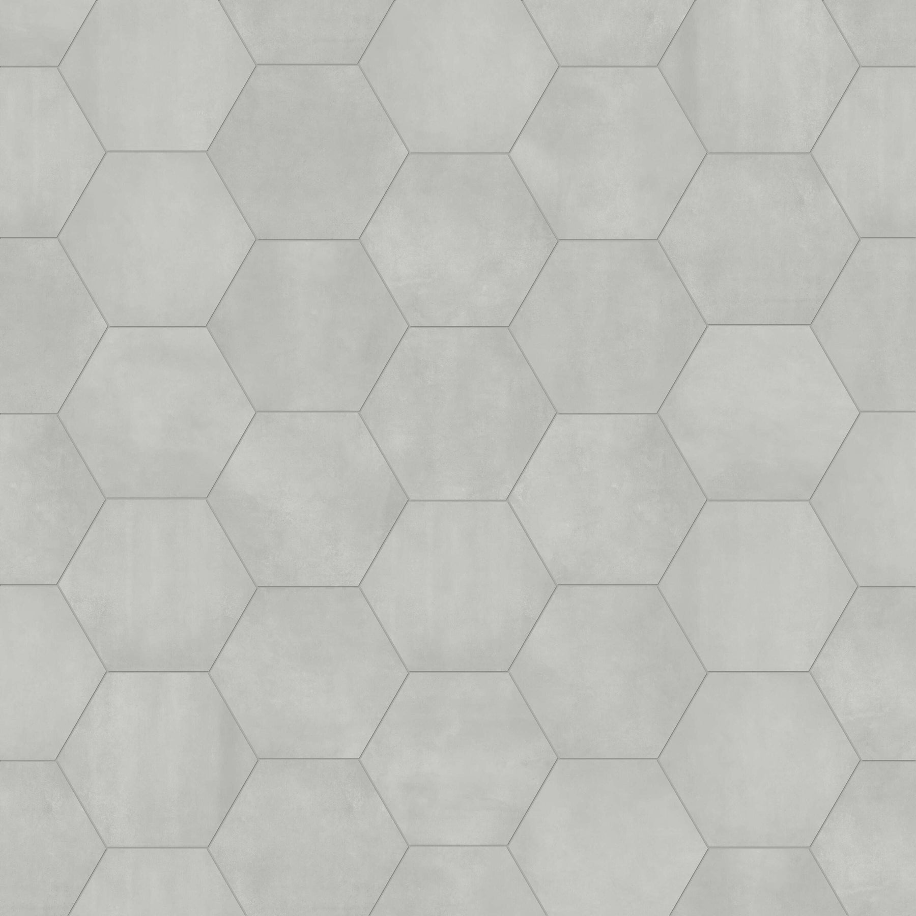 Enhance your home with the elegant, durable look of Satori's Nouveau Greige hexagon tile—perfect for your next project.