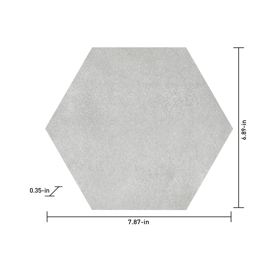 Elevate your space with Satori's Nouveau Greige matte porcelain hexagon tile, designed to make a statement while resisting wear. Ideal for floors and walls, this encaustic-style tile brings a contemporary gray sophistication to any room.