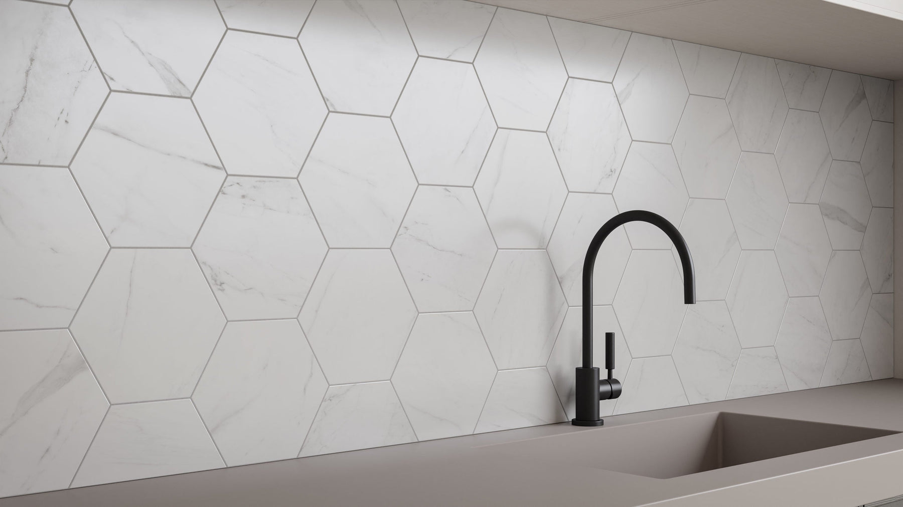 Upgrade your interiors with the Satori Regent Carrara Nevoso Matte Porcelain Tile. Offering a contemporary marble look, this hexagonal tile provides a touch of elegance and durability for walls and floors in various high-traffic spaces. Perfect for modern home renovations, its scratch and fade-resistant design ensures a long-lasting aesthetic appeal.