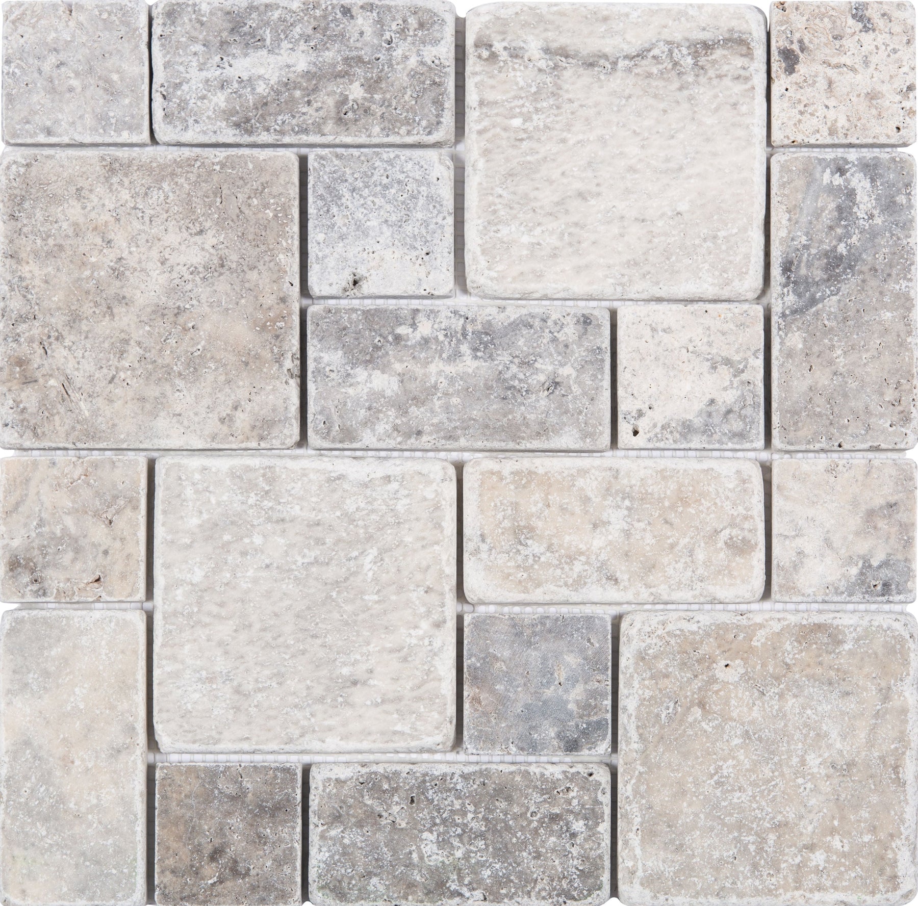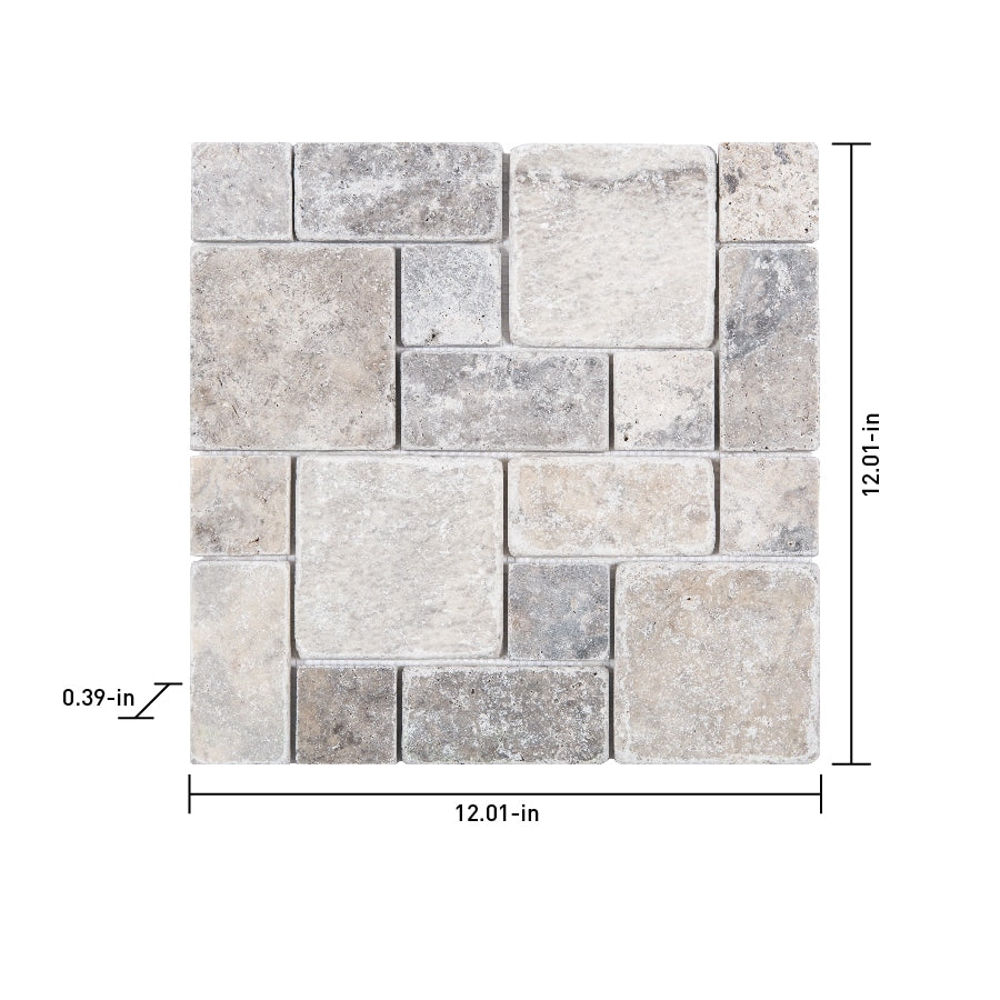 The Satori Silver Crescent Honed Mosaic Wall Tile creates a sophisticated natural stone look in any home improvement project. Each 12-in x 12-in tile showcases warm gray and tan hues with a Versailles pattern, offering an elegant upgrade that withstands medium to heavy traffic. Perfect for walls, backsplashes, and oven surrounds, its travertine construction is both timeless and versatile.