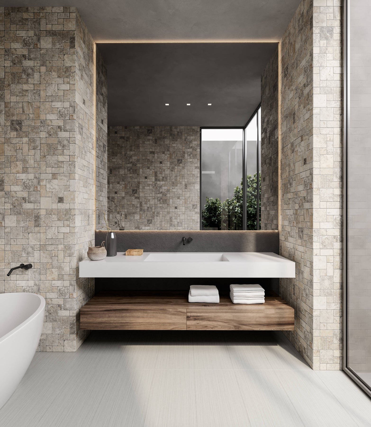 Color: Warm gray and tan shades with natural variation in color, texture, and veining.