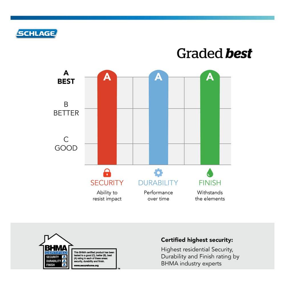 Backed by a limited lifetime mechanical and finish warranty, and a limited three-year electronics warranty. See Schlage warranty for full details. |