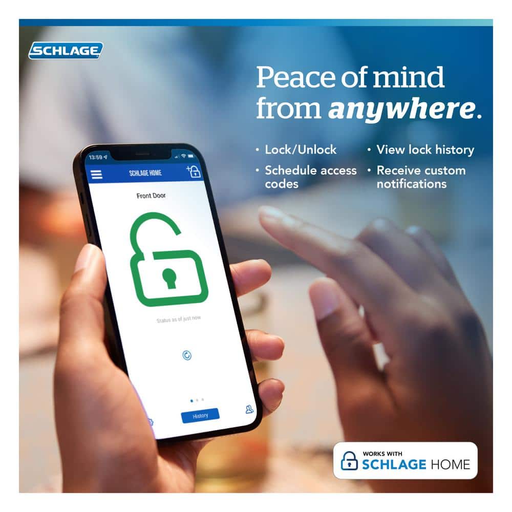 WiFi Integration: Connects to home WiFi for remote monitoring and control via the Schlage Home app.