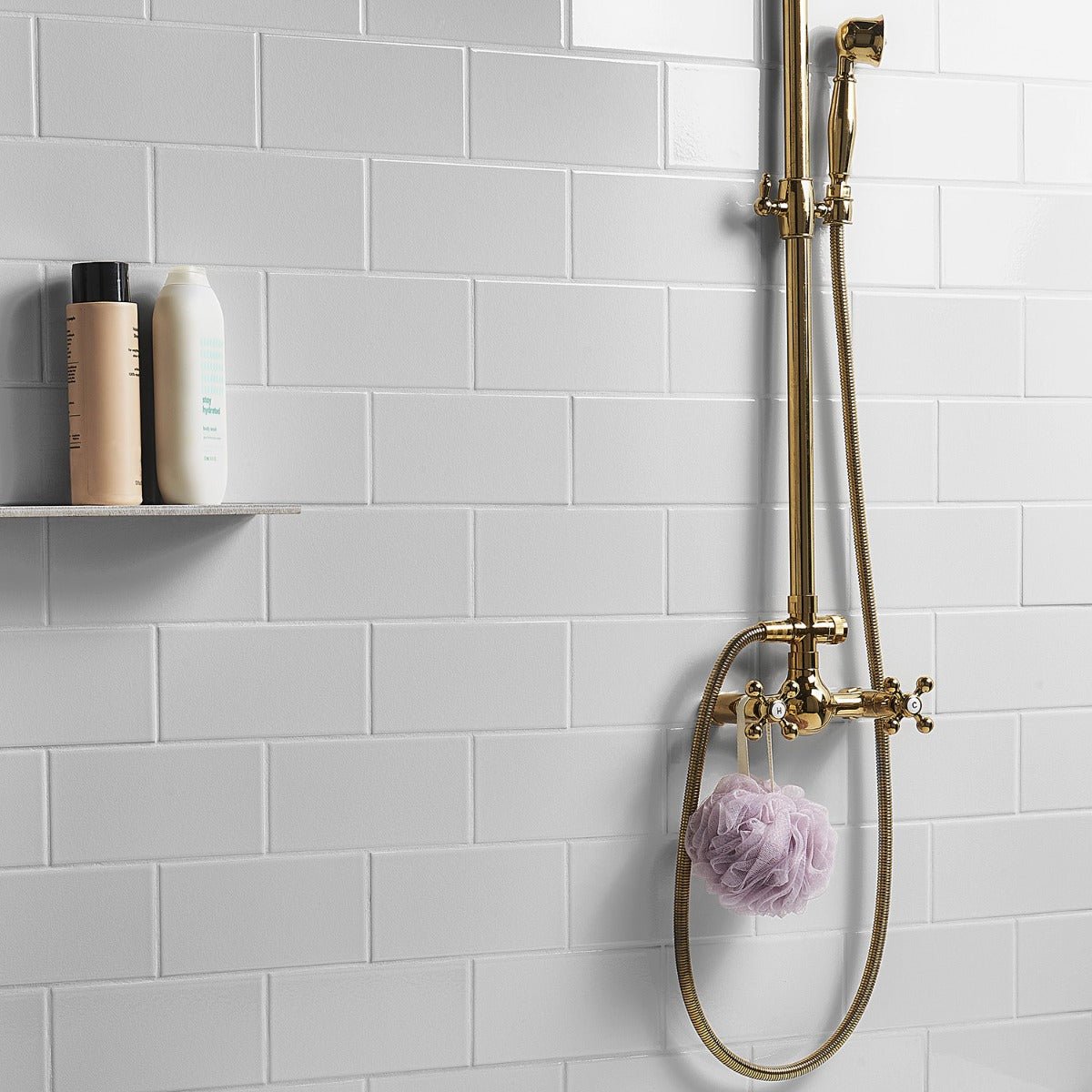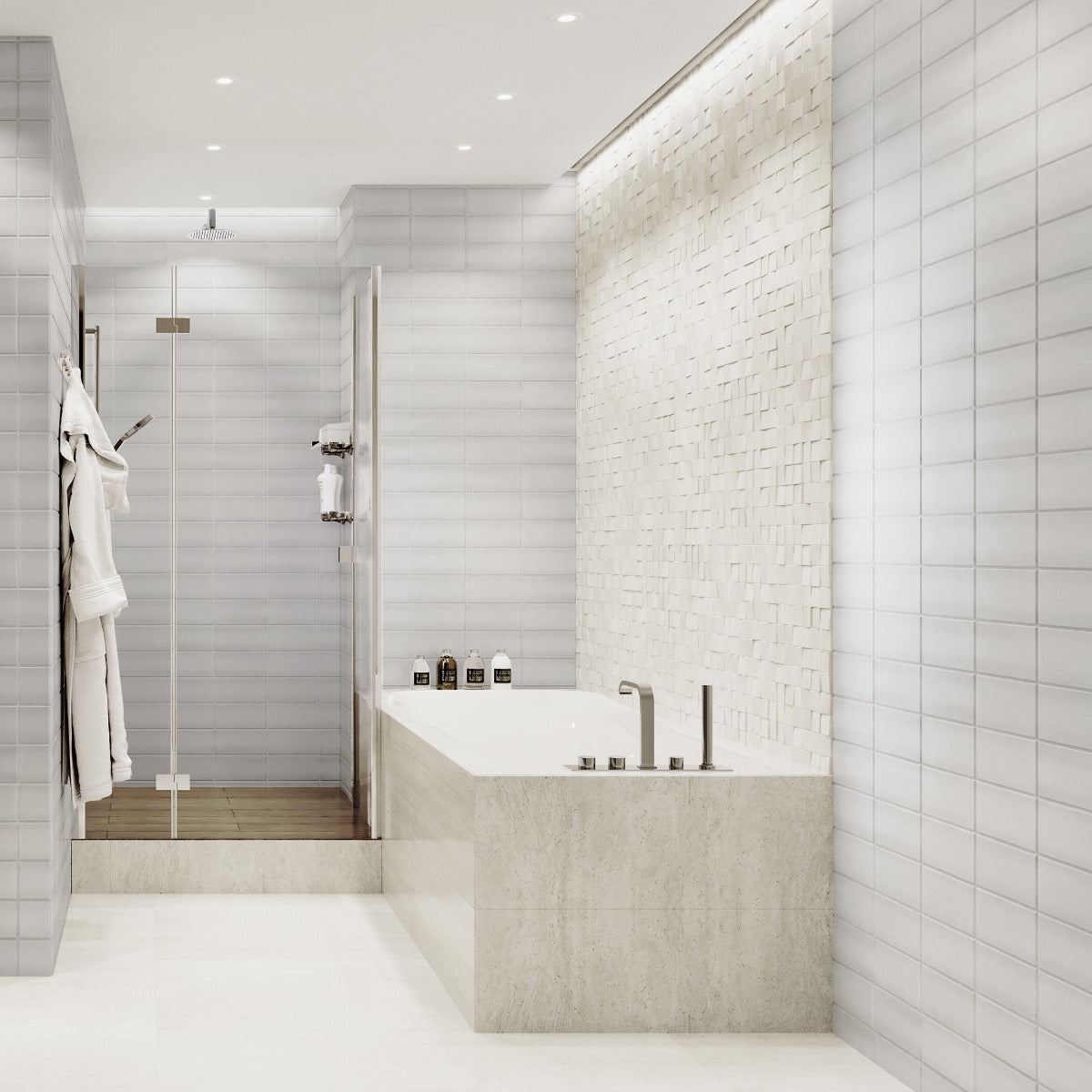 Transform your space with the timeless elegance of the Seaside Cotton White Crackled Glossy Tile.