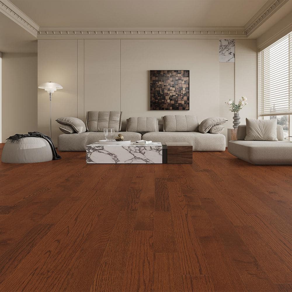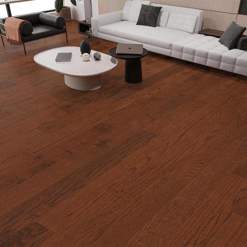 Imagine stepping into a space where the aesthetics of rich Gunstock Oak flooring transport you into a realm of warmth and sophistication. The smooth texture and low gloss finish create a timeless canvas that complements modern and rustic interiors alike. Style it with plush area rugs to highlight its smooth elegance and natural allure. With its environmentally mindful design, this luxurious flooring becomes an indispensable part of any refined home sanctuary.