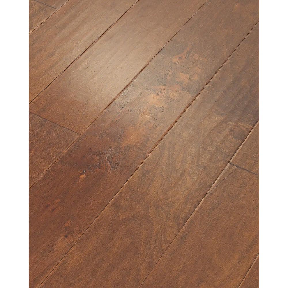 Transform your space with Shaw's Inspire Cinnamon Maple Engineered Hardwood Flooring, featuring a luxurious, hand-scraped texture and a rich cinnamon hue. This durable flooring showcases the timeless beauty of real domestic maple with mixed-width planks that enhance any room with warmth and elegance.