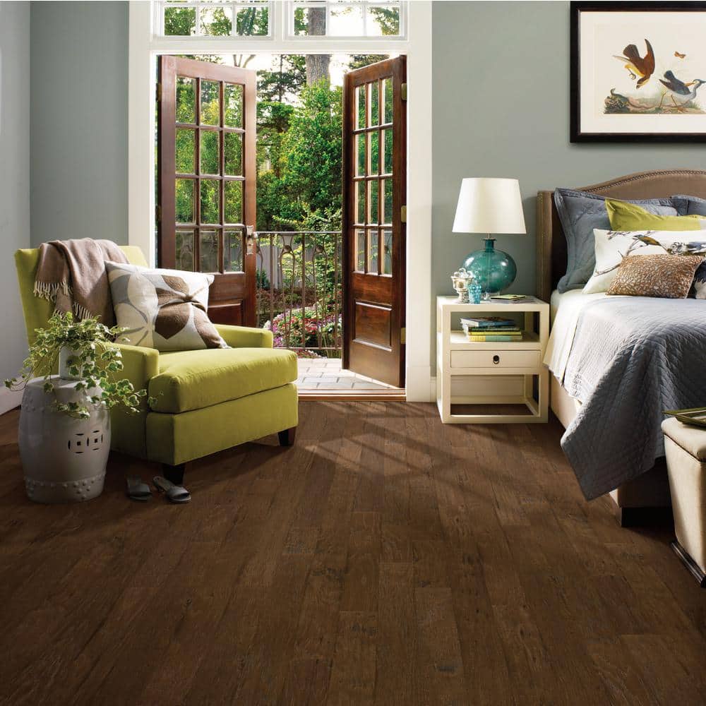 Transform your home with the unmatched allure of Western Saddle Hickory engineered hardwood flooring by Shaw. The hand-scraped texture breathes life into any room, evoking an artisanal charm that feels both curated and timeless. Imagine the warm, earthy tones magnifying the natural light in a spacious living room or accentuating a cozy home office. Invite the sophistication of authentic hickory into your interiors, cementing your space as a true testament to luxurious and tasteful living.