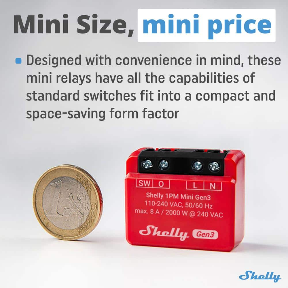 Shelly 1PM Mini Gen3, WiFi and Bluetooth Smart Switch Relay, 1 Channel 8A With Power Measurement, Home Automation (2-Pack)