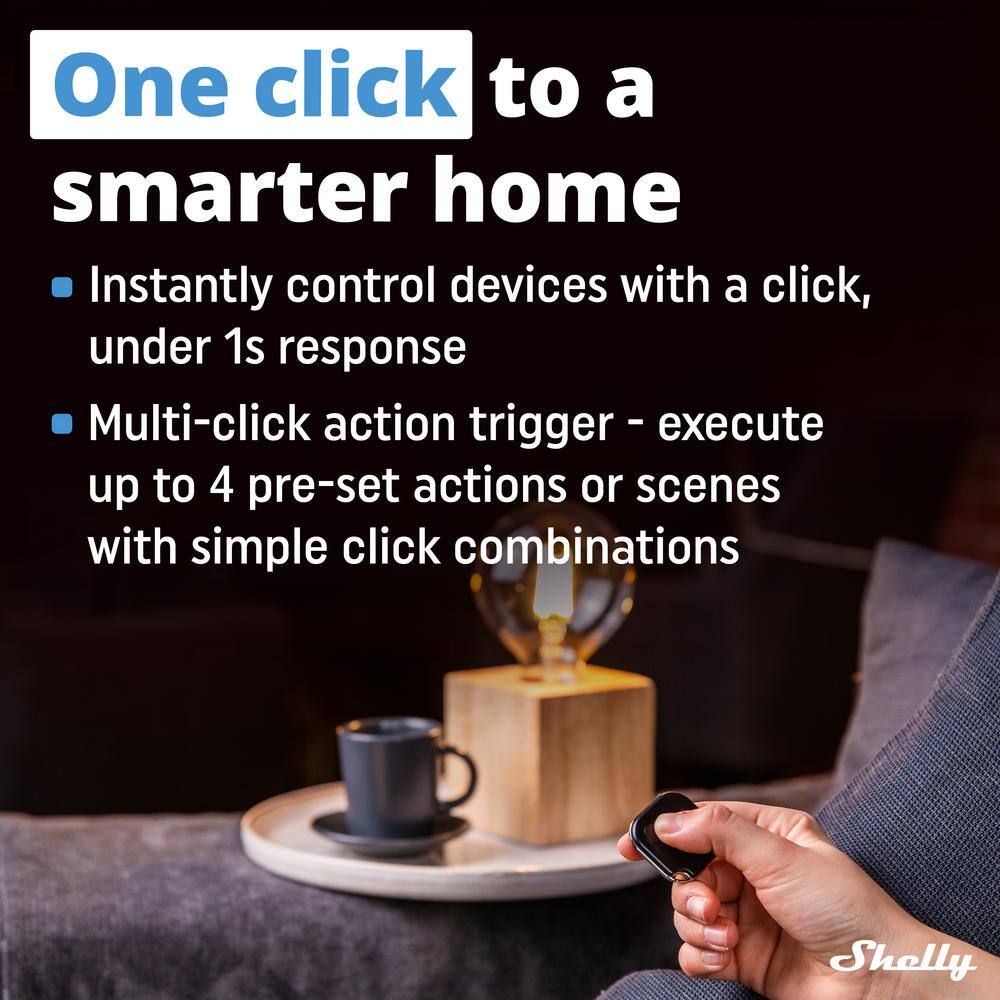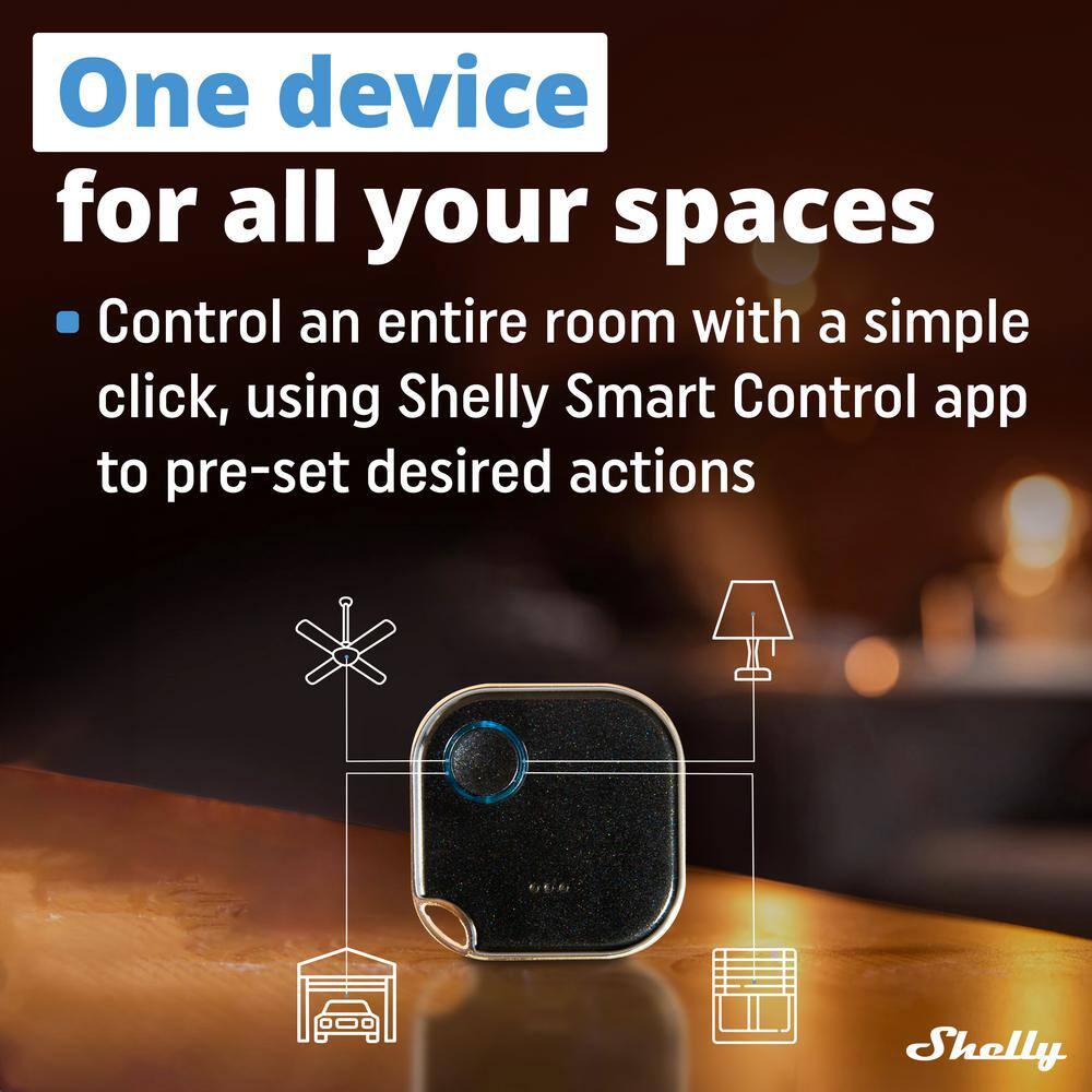 Imagine sculpting your environment with the simple press of a button. The Shelly BLU Button1 Black not only harmonizes with modern interiors through its sleek design but also becomes a key player in orchestrating your smart living experience. Envision triggering an atmosphere of serene ambiance just before a dinner party — lights dimming, blinds adjusting, all with a gentle touch. Entrust your space to Shelly's sophisticated technology and elevate the art of connected living.