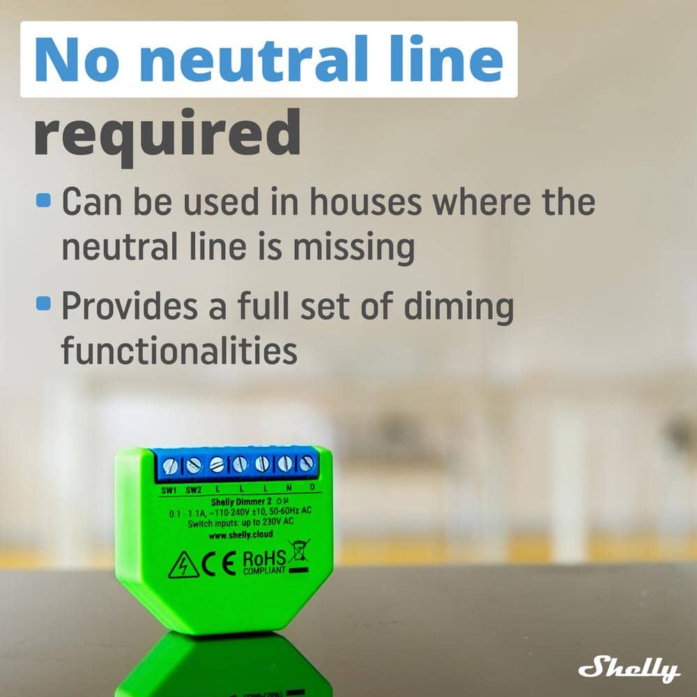 Q: Can the Shelly Dimmer 2 be installed without a neutral wire?