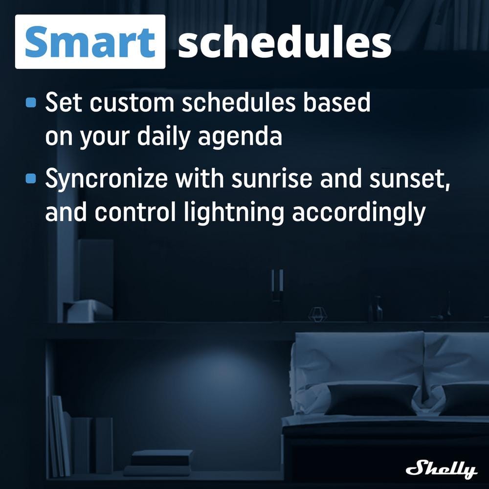 A: Using the Shelly app, you can create custom schedules and scenes to control your lighting based on time or natural light conditions.