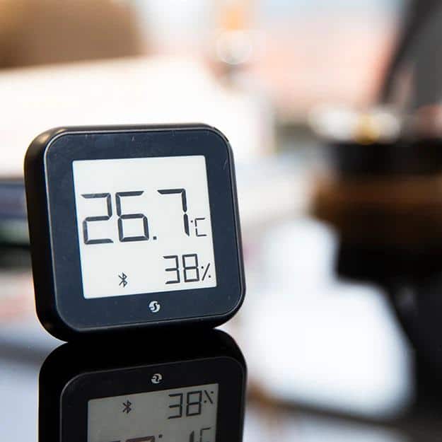 Elevate your home's ambience with the sleek Shelly H&T Gen3 Smart Sensor. Its chic black finish subtly complements any modern interior while silently optimizing your environment. Arrange it in an artful vignette on a side table or discreetly place it in a nursery for effortless climate control. This sensor isn't just functional; it transforms smart living into an art form, making luxury and convenience effortlessly accessible.