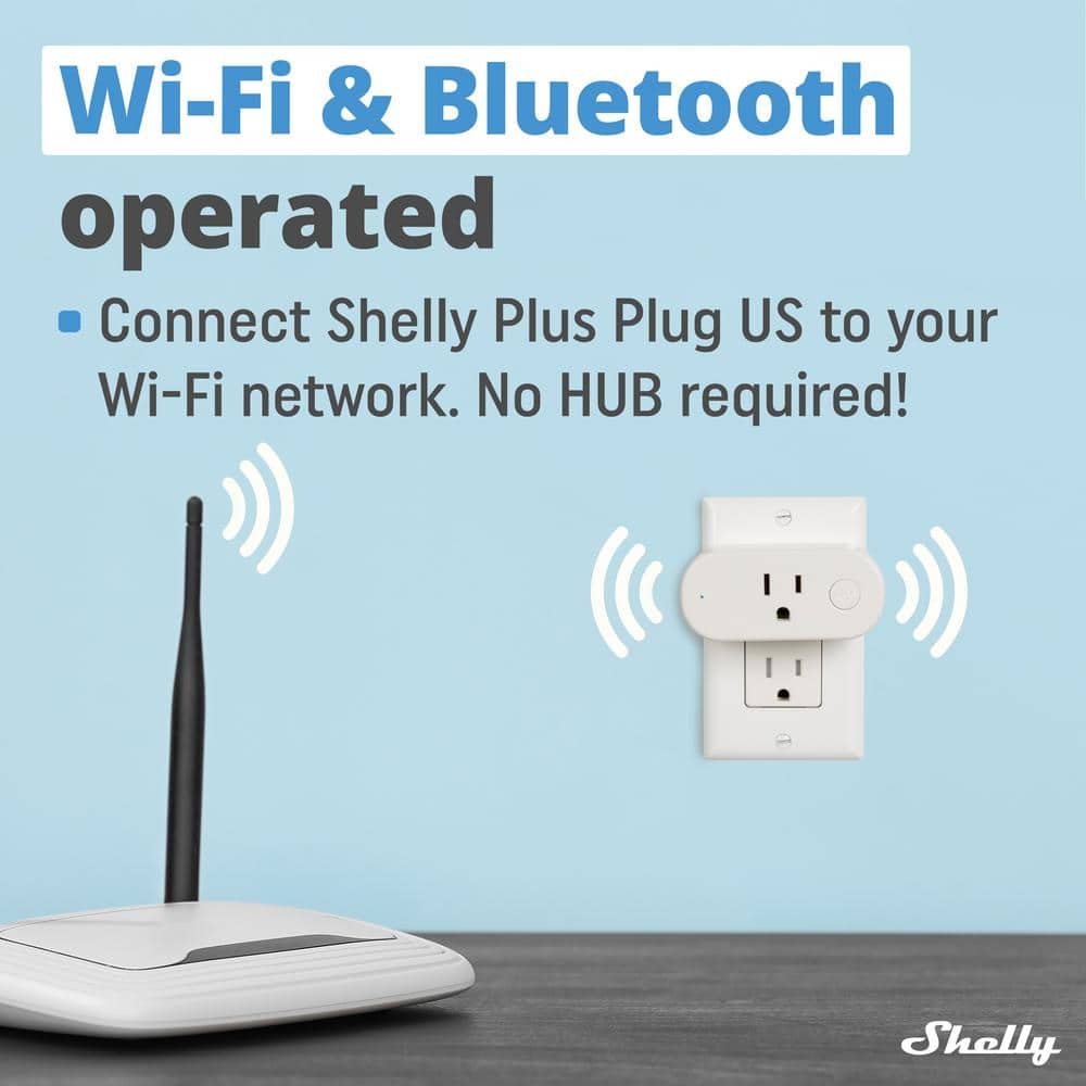 Shelly Plus Plug US, WiFi and Bluetooth Operated Smart Plug With Power Measurement, Home Automation, Remote Control
