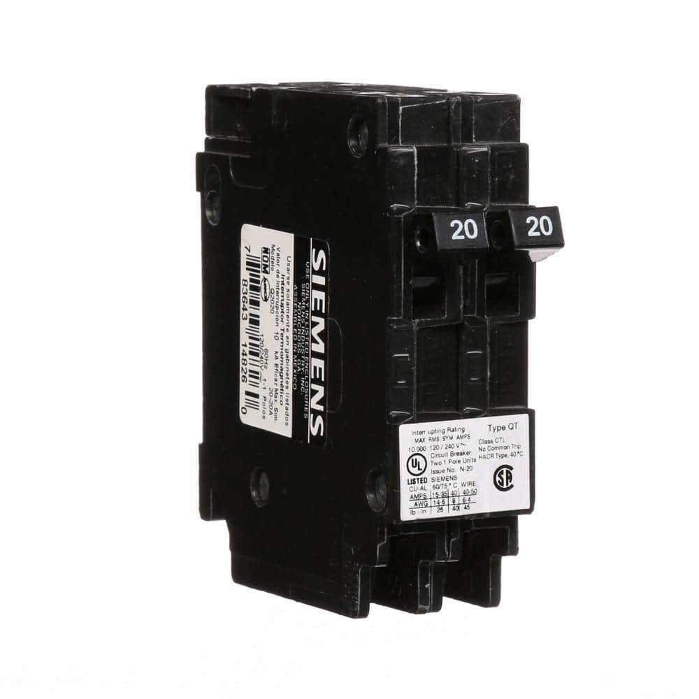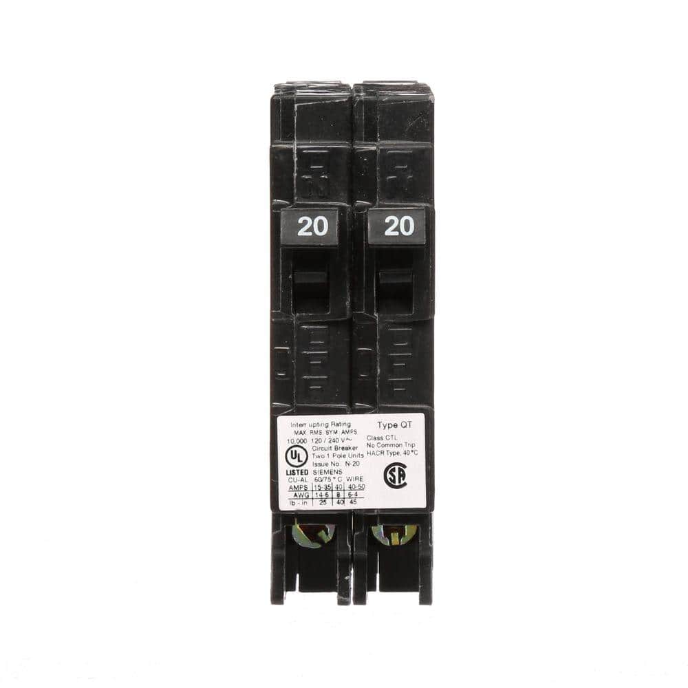 Siemens 20 Amp Tandem Single Pole Type QT Circuit Breaker