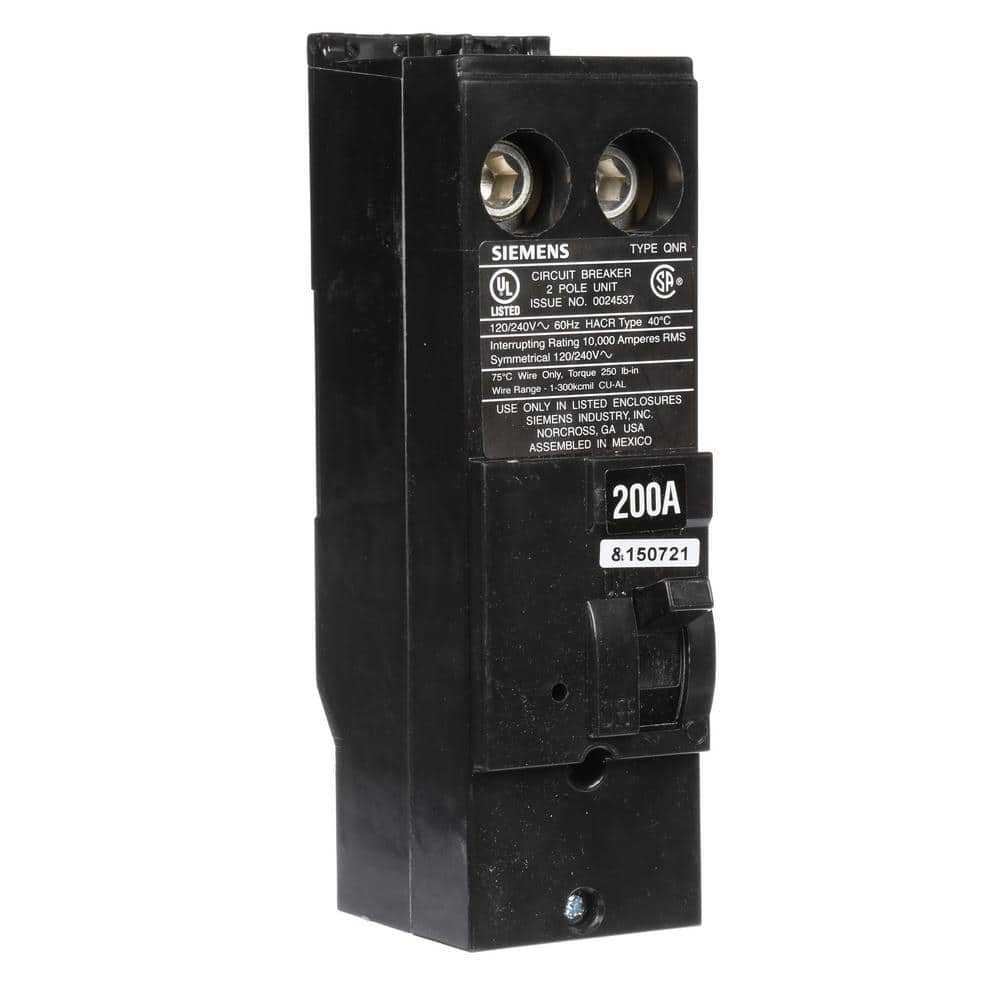 The Siemens 200 Amp 2-Pole Main Breaker provides reliable power management, designed for use in Siemens panels. With an interrupting rating of 10,000 AIC, this breaker ensures safety and durability for high-capacity installations, featuring a reverse handle for convenient operation.